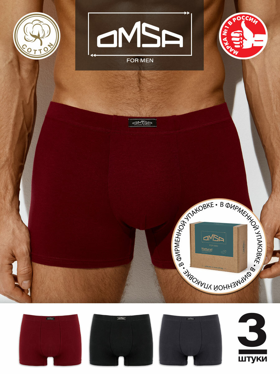 Трусы мужские B_OmB 1233 Боксеры с закрытой резинкой, COTTON Nero/Bordo/Grigio Scuro 46(M) комплект 3шт