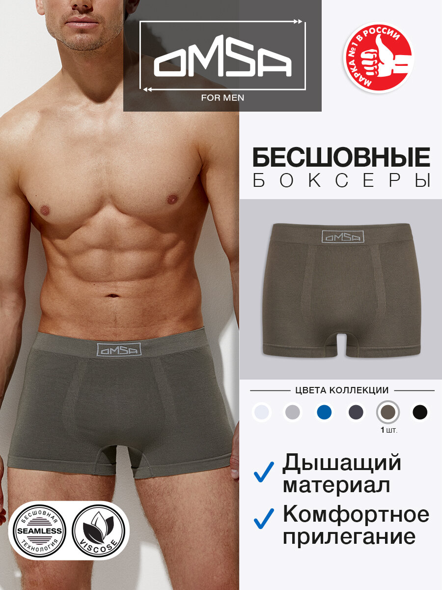 Трусы мужские бесшовные боксеры из вискозы, OMSA for MEN Seamless VISCOSE Boxers, размер 52=XXL, Militari=Милитари