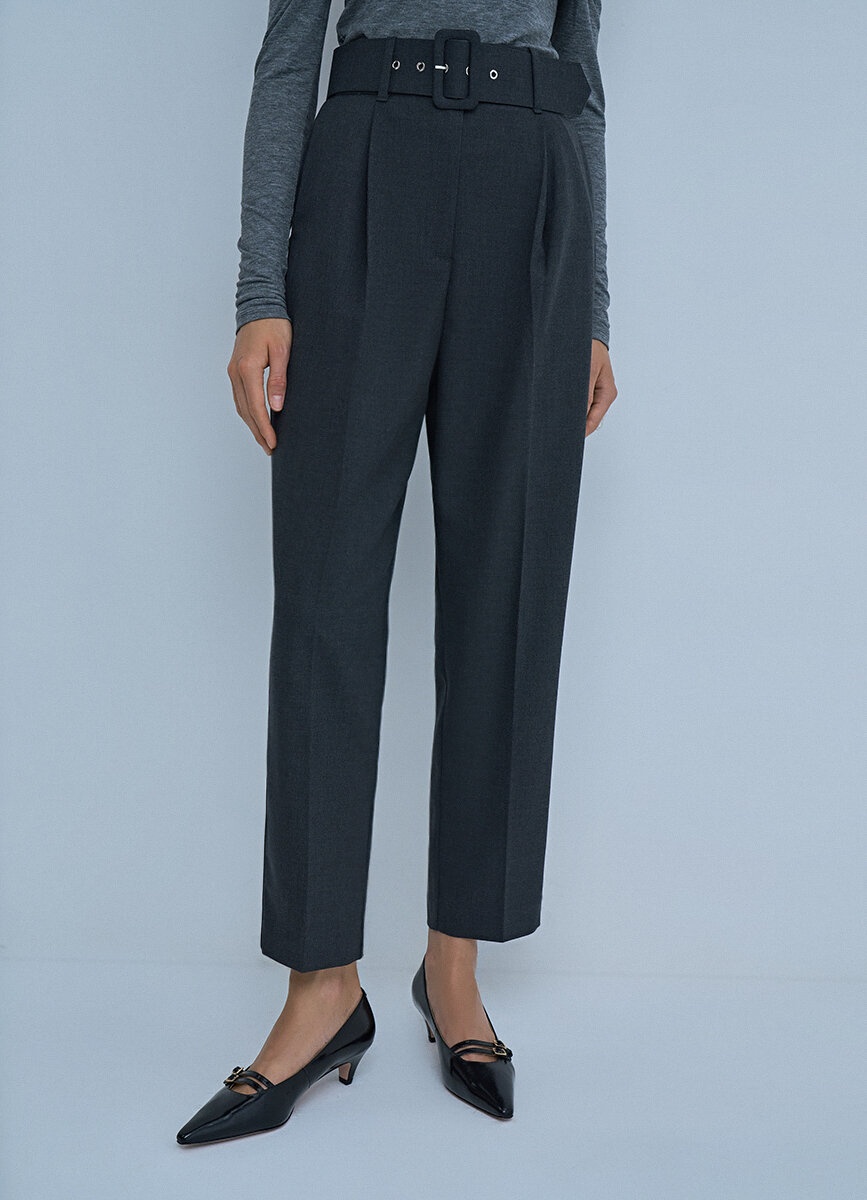 Брюки для женщин с ремнем, O'stin, LP4711O02, темно-серый, XS (RU 42)