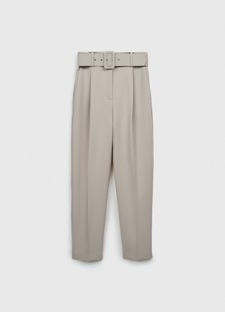 Брюки для женщин с ремнем, O'stin, LP4711O02-02, молочный, XS (RU 42)
