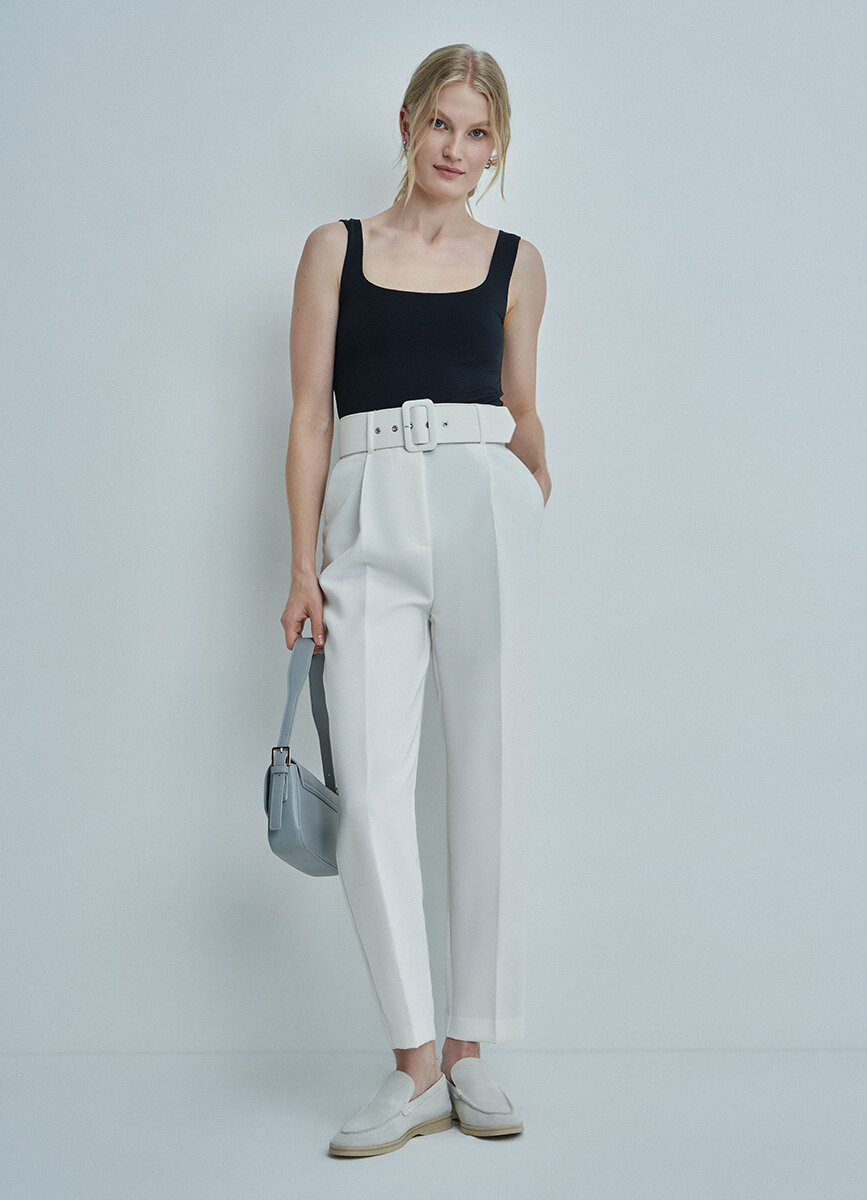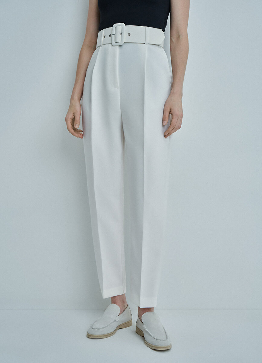 Брюки для женщин с ремнем, O'stin, LP4711O02-02, молочный, XS (RU 42)