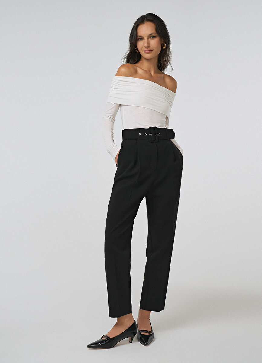Брюки для женщин с ремнем, O'stin, LP4711O02, черный, S (RU 44)