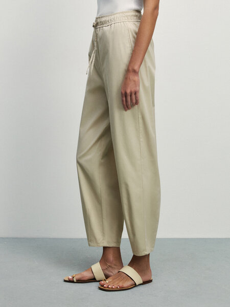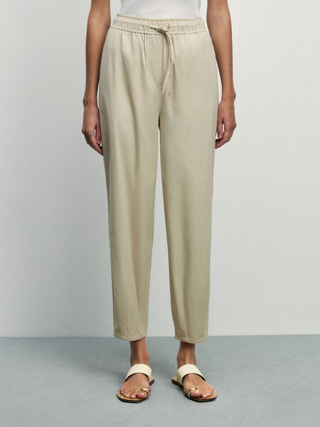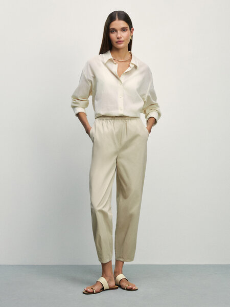 Zarina Зауженные брюки с эластичным поясом, цвет Кремовый/светлый беж, размер XS (RU 42), 4225226756-61