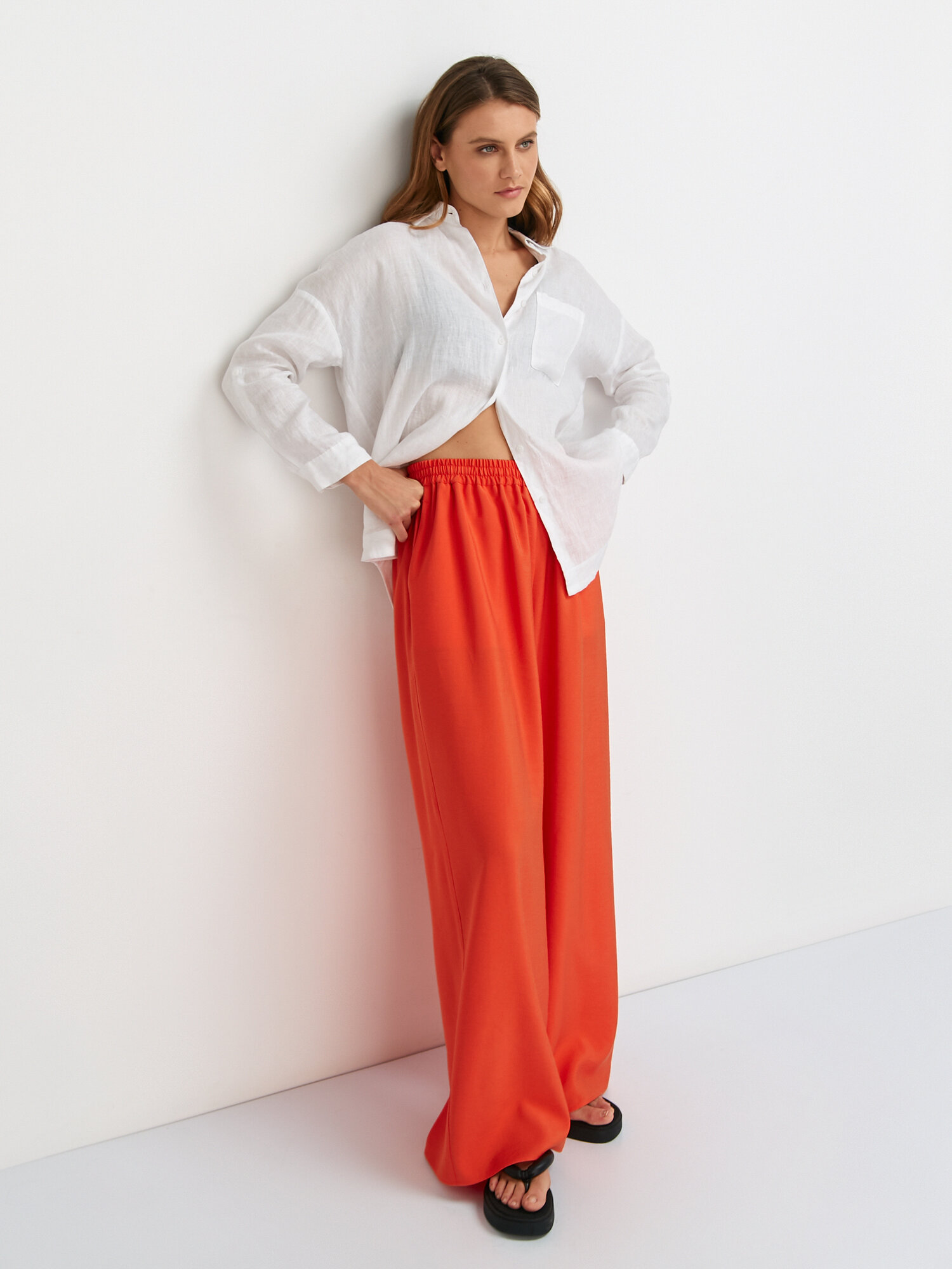 Купить Брюки летние широкие на резинке оранжевый XS/S