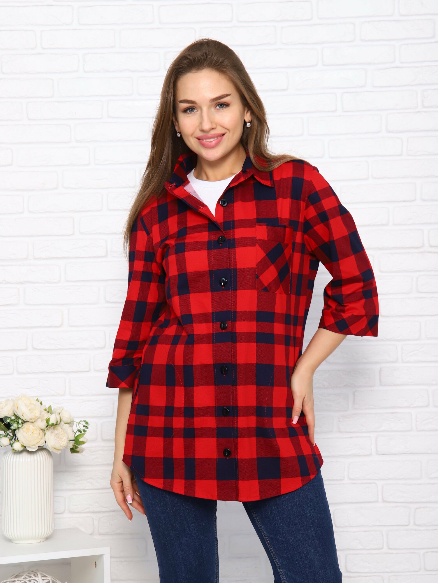 Купить Туника в клетку на пуговицах, Bentog, 48 размер, красный, синий В-02