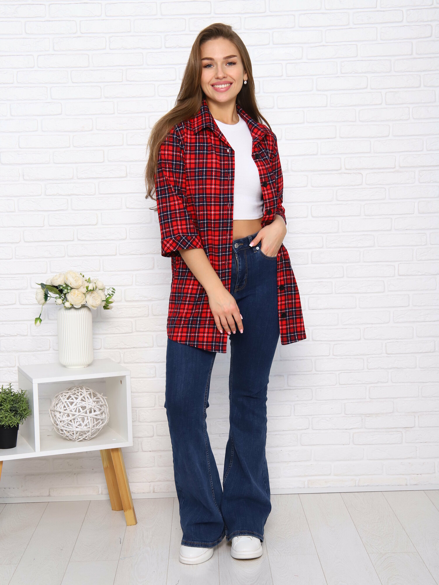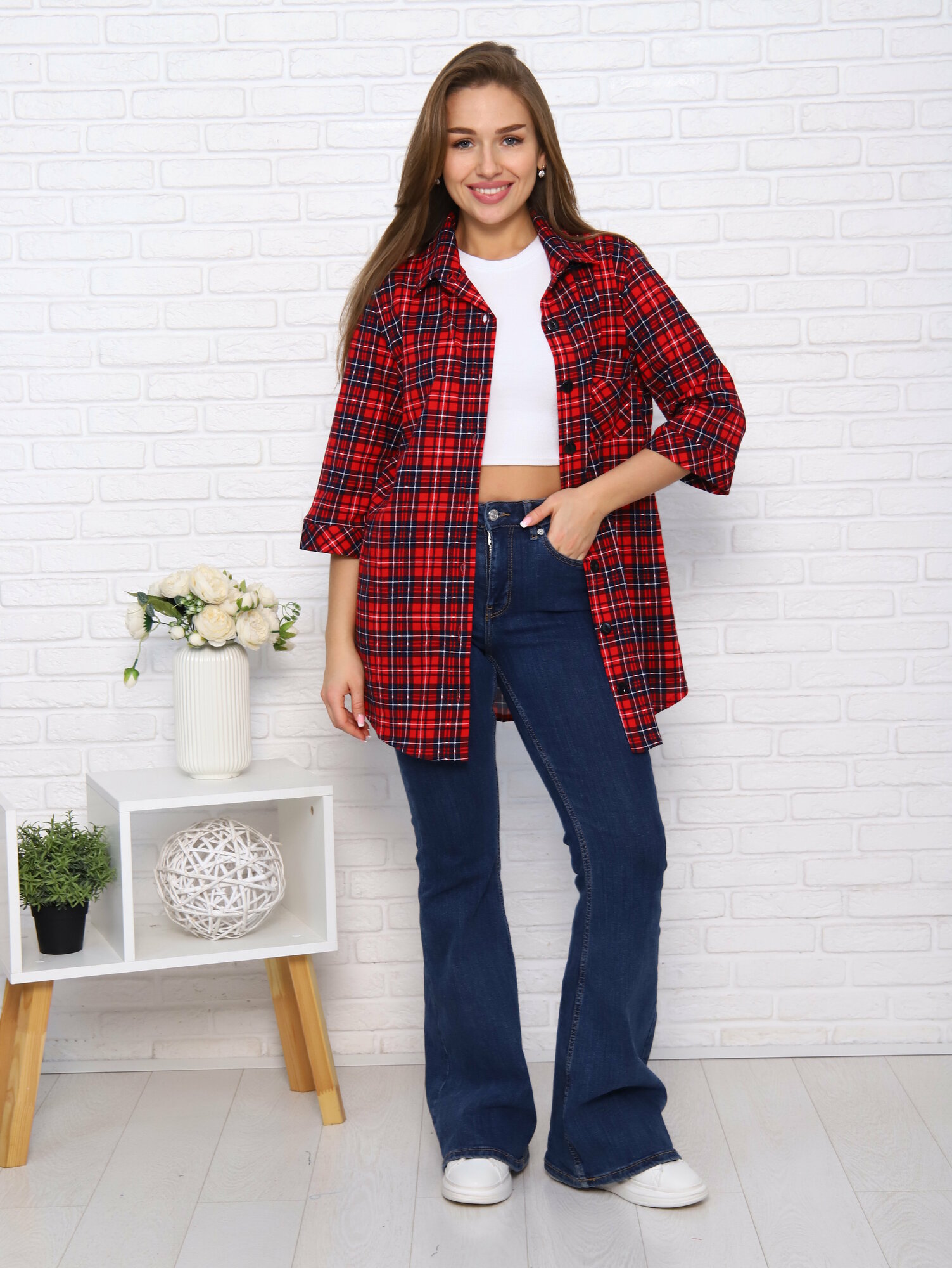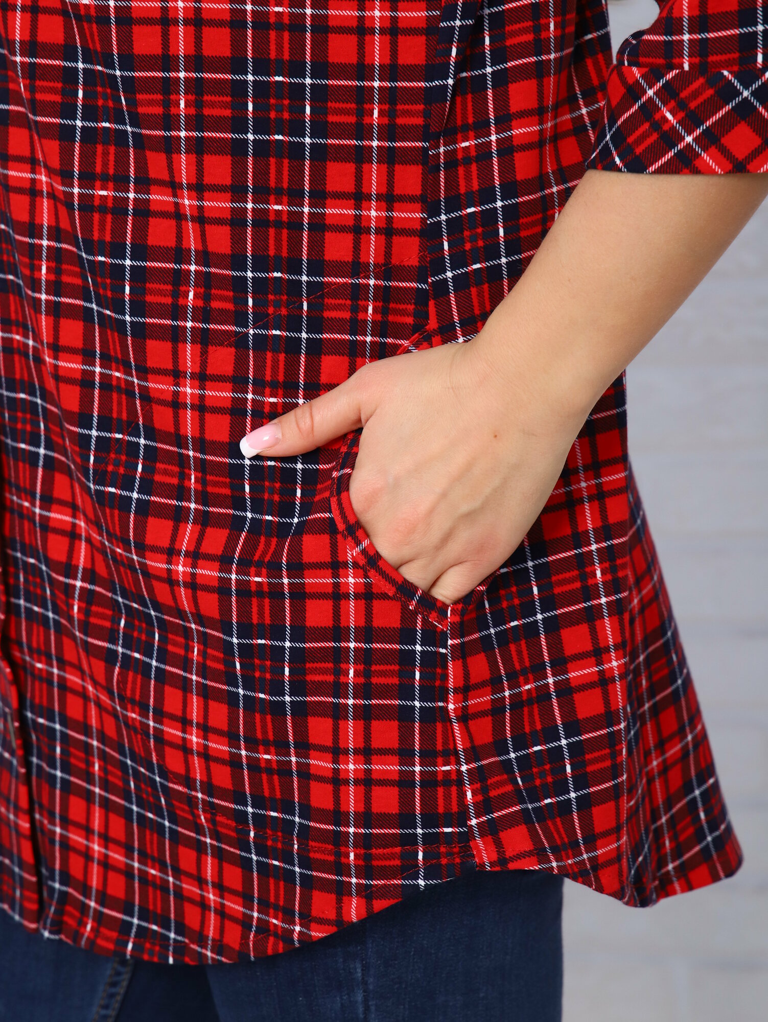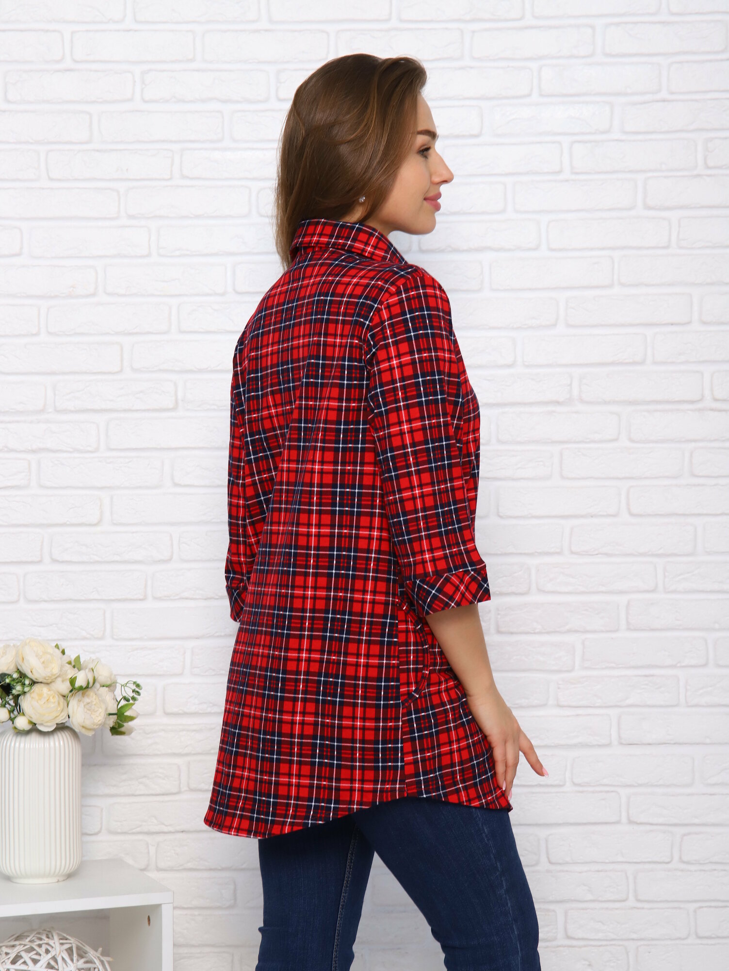 Туника в клетку на пуговицах, Bentog, 56 размер, красный, синий В-02