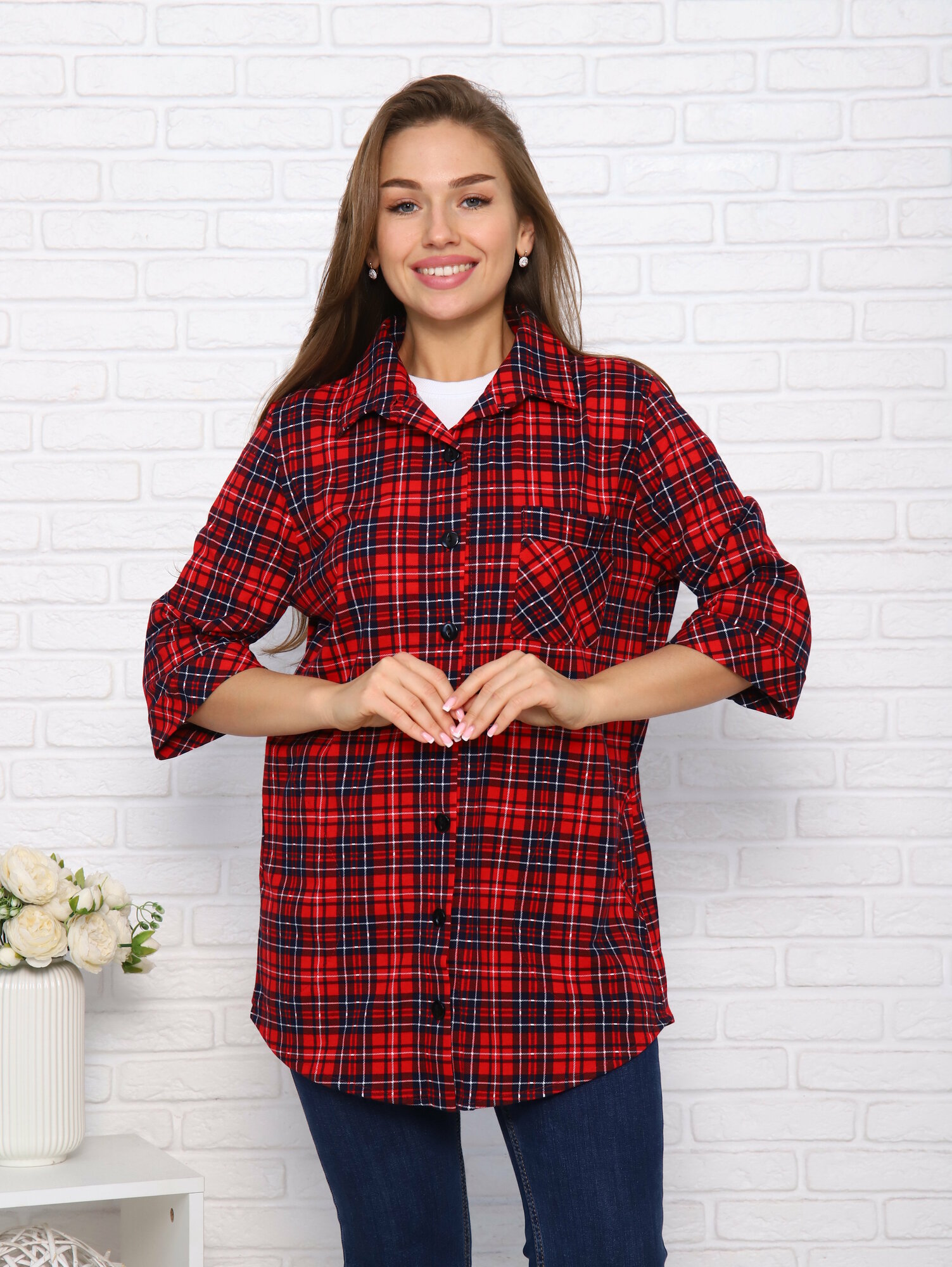 Туника в клетку на пуговицах, Bentog, 50 размер, красный, белый, синий В-05