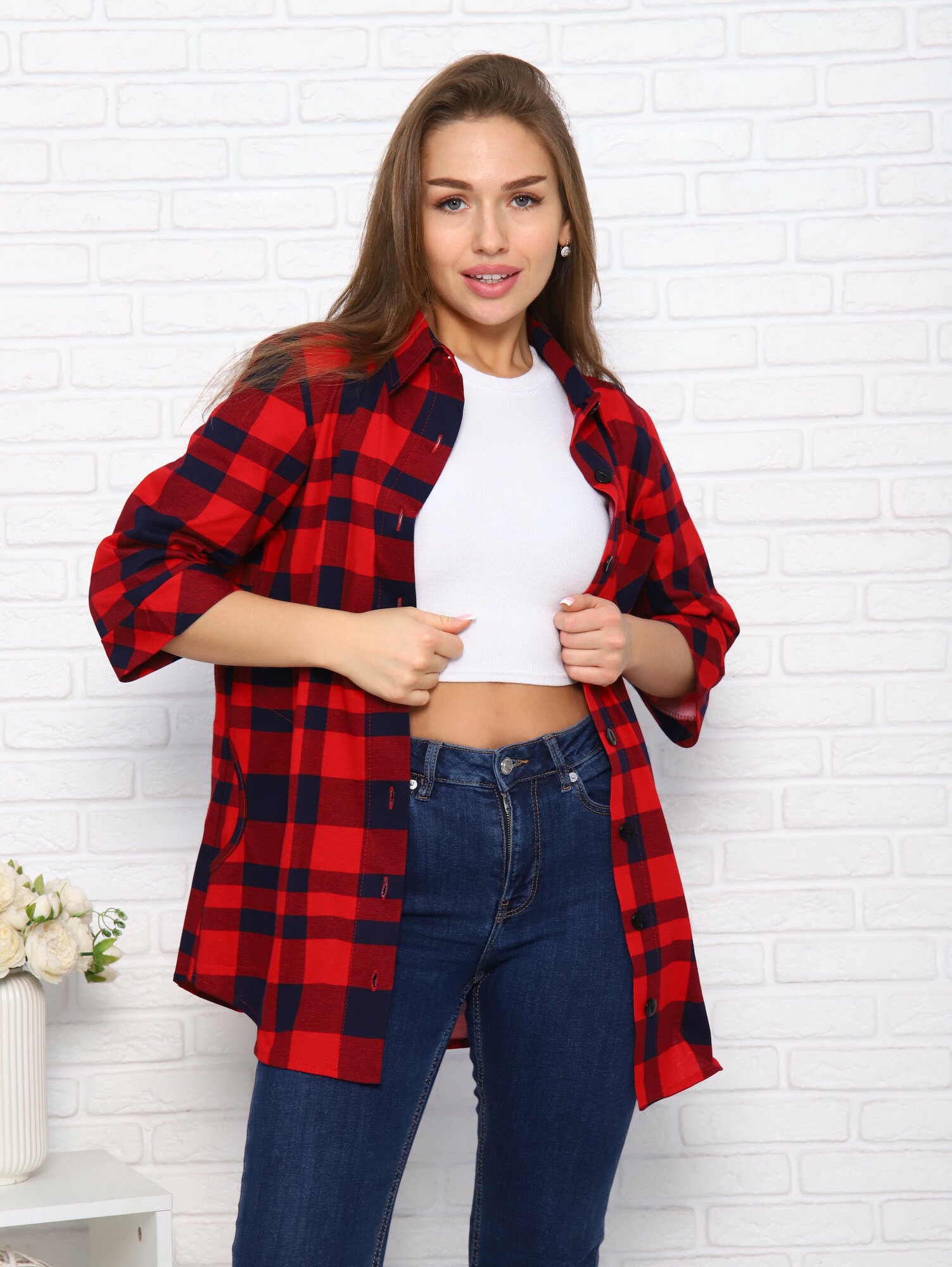 Туника в клетку на пуговицах, Bentog, 56 размер, красный, синий В-02