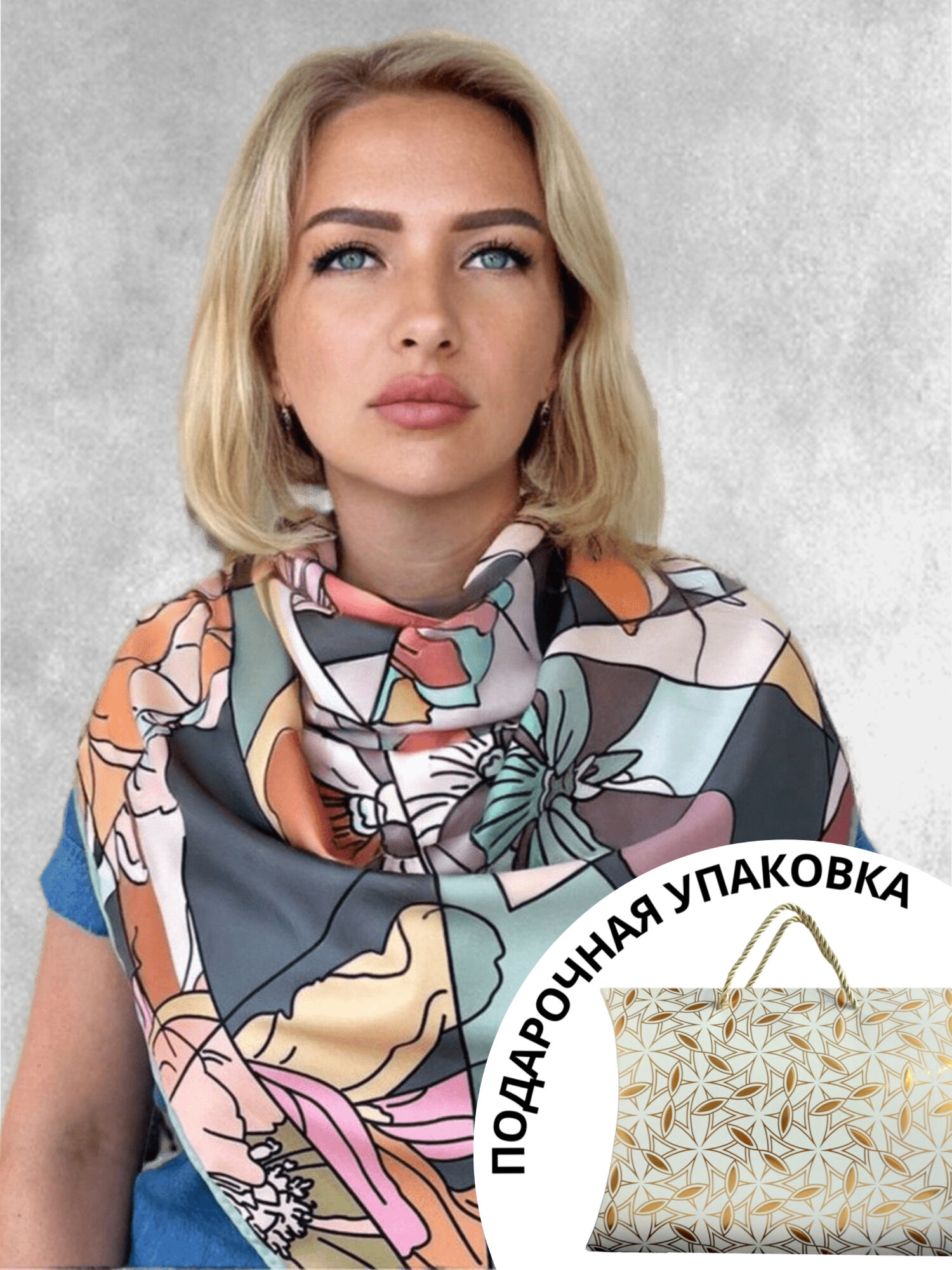 Шелковый платок Toriolli серый 90 х 90 с подарочной упаковкой