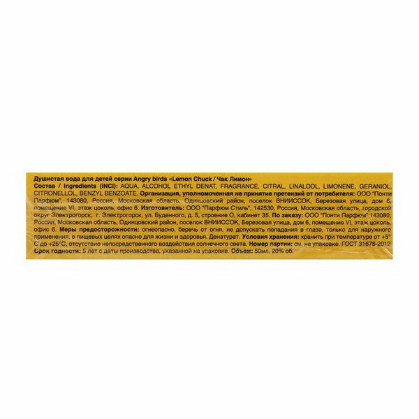 Angry Birds Душистая вода для детей Angry Birds Lemon Chuck, 50 мл