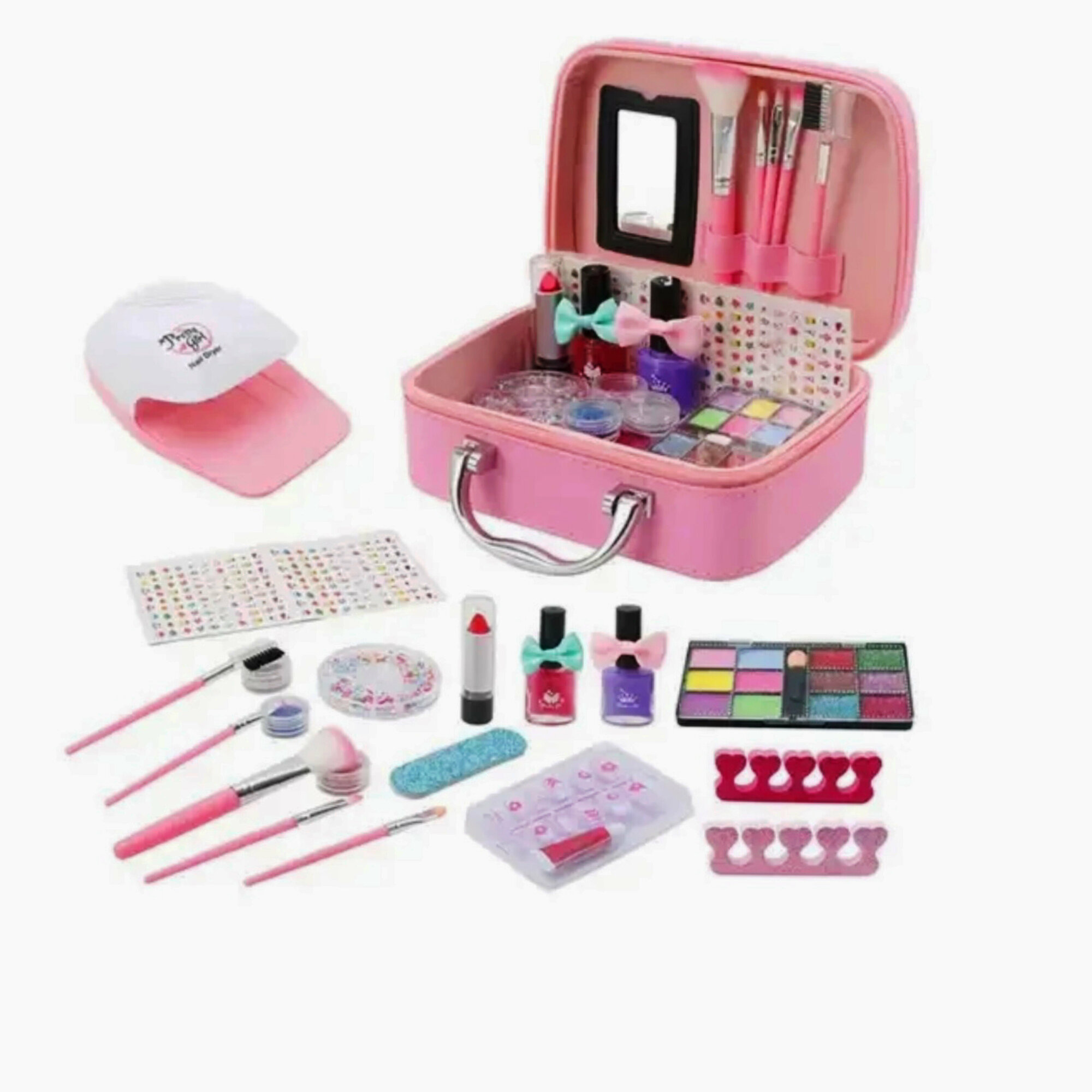 | Подробная комплектация | Сумка-чемоданчик на молнии из эко-кожи Тени 6 шт. и блестки 6 шт. для глаз в палетке Помада для губ - 1 шт. Лак для ногтей 2 шт. Кисточка для нанесения макияжа - 6шт. Зеркало 1 шт. Разделитель для пальцев - 2 шт. Наклейки на ногти - 171 шт. Пилочка для ногтей - 1 шт. Карандаш для глаз - 1 шт. Блестки - 3 шт. Накладные ногти 10 шт. + клей Декоративные украшения для ногтей 1 упаковка |