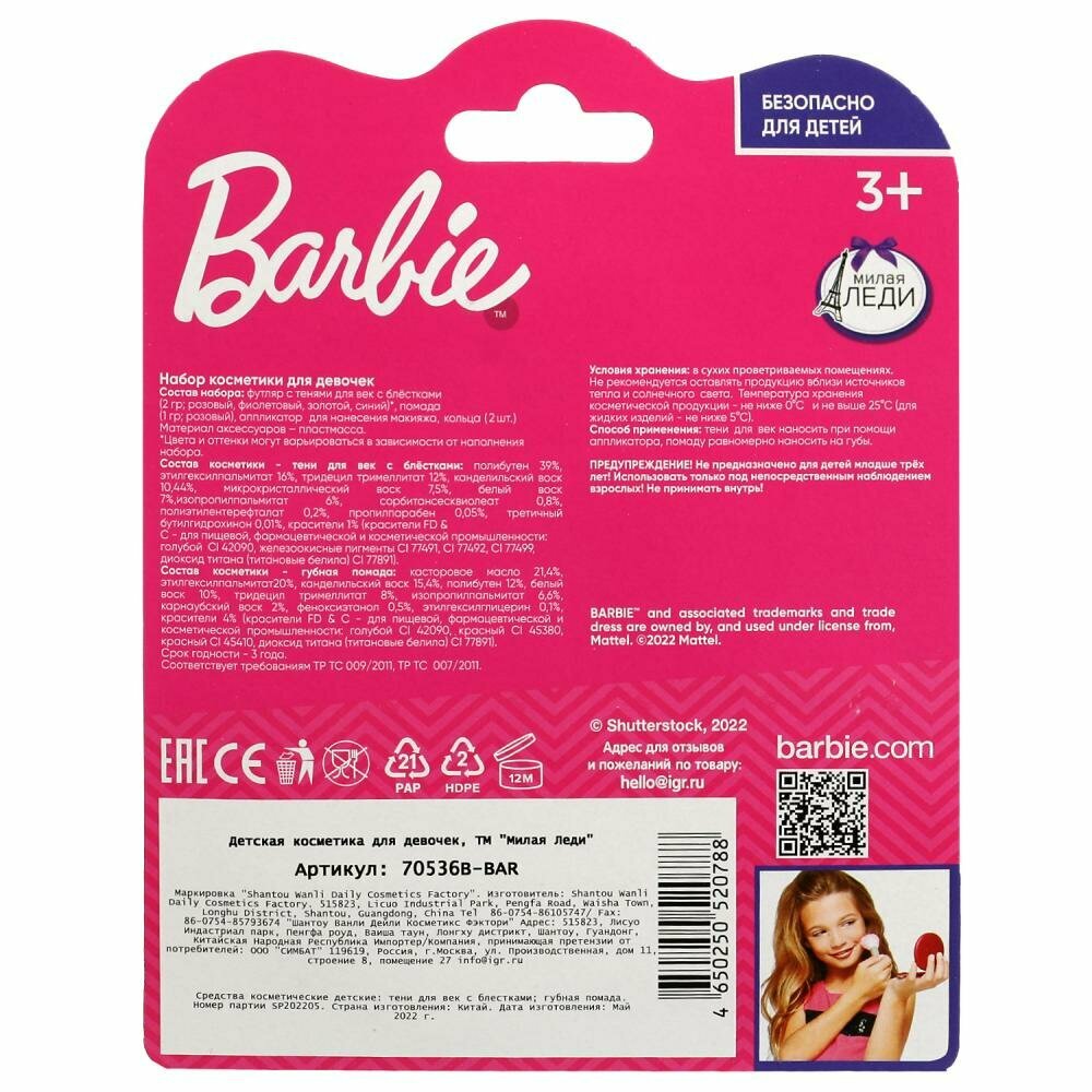 Косметика для девочек: тени для век с блестками, помада Барби Милая Леди 70536B-BAR интересное: