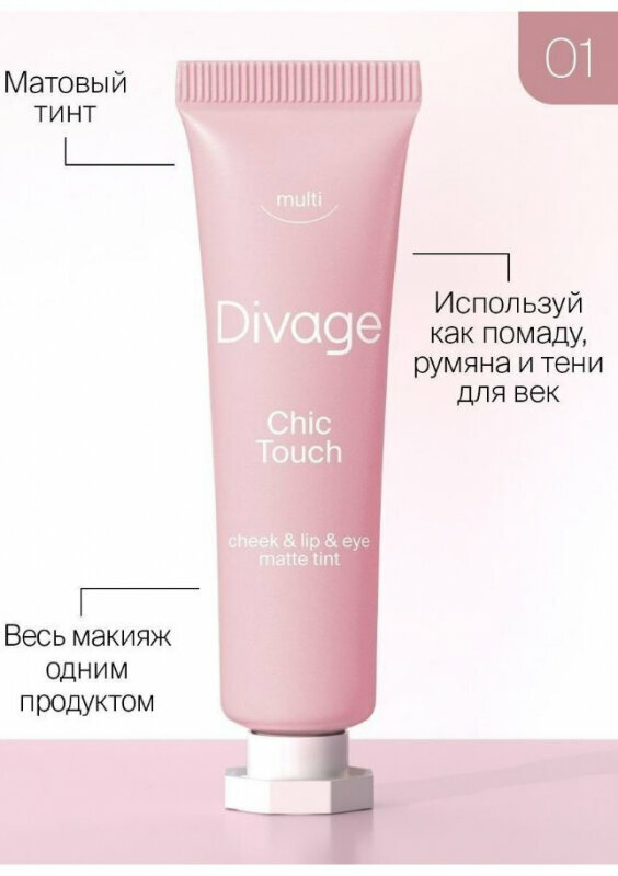 Divage Кремовый Тинт Chic Touch Matte Tint Для Щек, Губ И Глаз Тон 01 холодный розовый