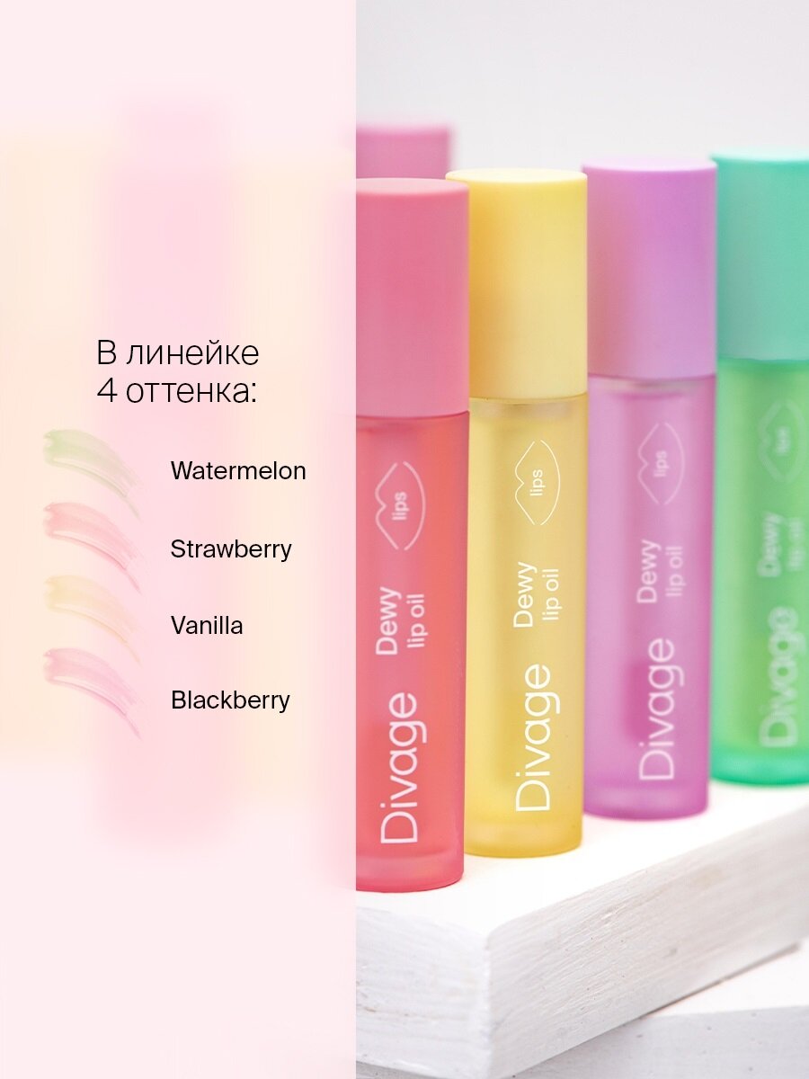 DIVAGE Масло для губ Dewy Lip Oil с с ароматом клубники strawberry, 3 мл, 01