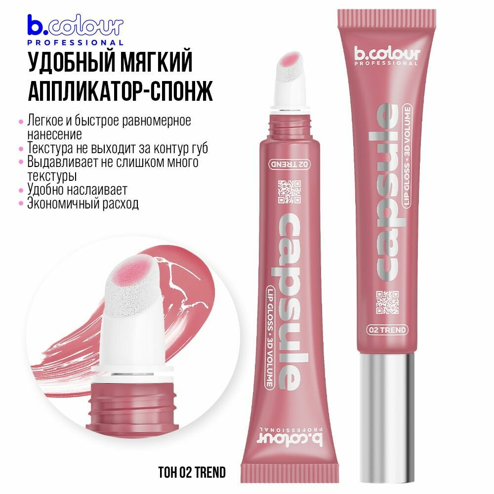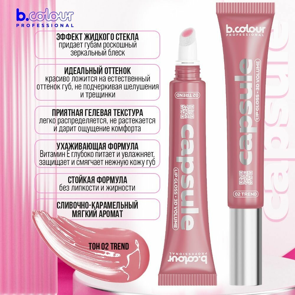 B.COLOUR PROFESSIONAL Блеск для губ розовый, бальзам увлажняющий CAPSULE 02 TREND