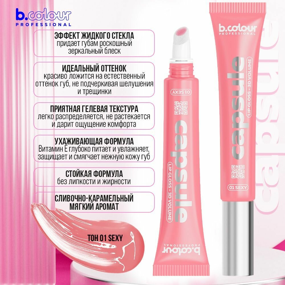 B.COLOUR PROFESSIONAL Блеск для губ розовый увлажняющий, бальзам CAPSULE 01 SEXY
