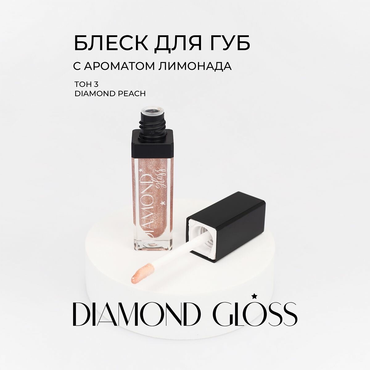 Блеск для губ Lavelle Collection глянцевый Diamond Gloss, тон 03 diamond peach/ алмазный персик