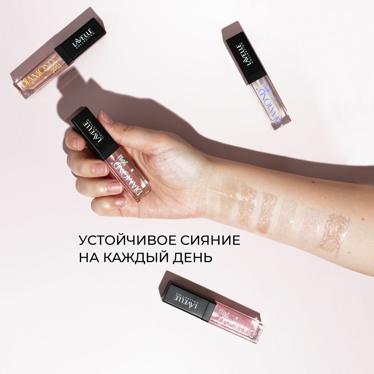 LAVELLE COLLECTION Блеск для губ Diamond Gloss, 5 мл, 07 kiss light pink