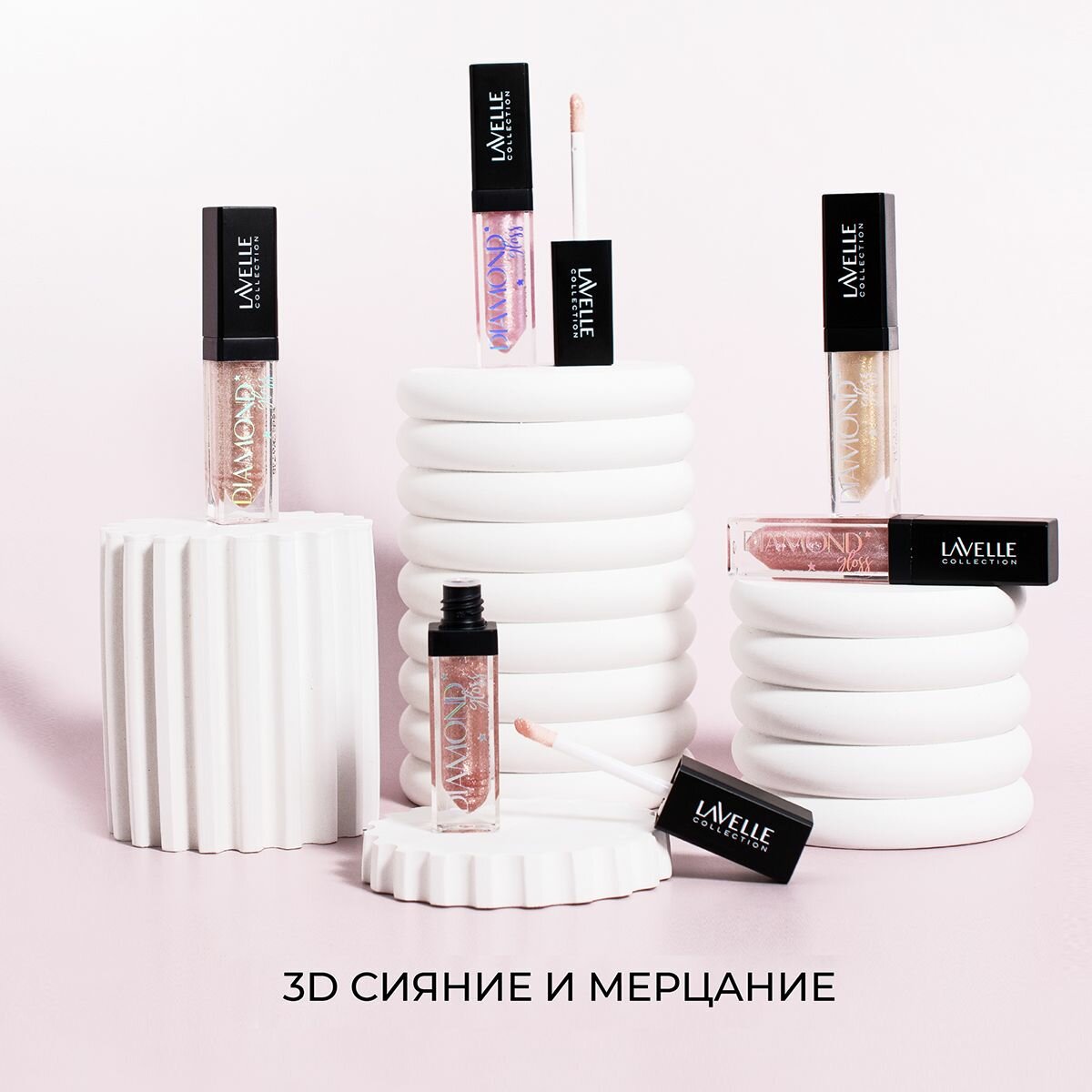 Блеск для губ Lavelle Collection глянцевый Diamond Gloss, тон 04 diamond pink/ алмаз розовый