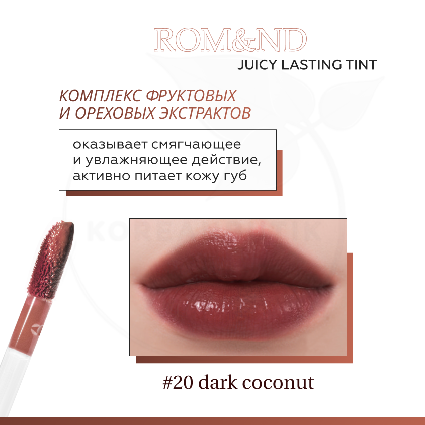 Купить Тинт глянцевый для губ | ROM&ND Juicy Lasting Tint 20. Dark Coconut