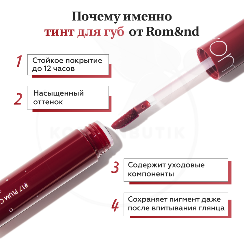 СохранитьТинт глянцевый для губ | ROM&ND Juicy Lasting Tint 17. Plum Coke интересное: