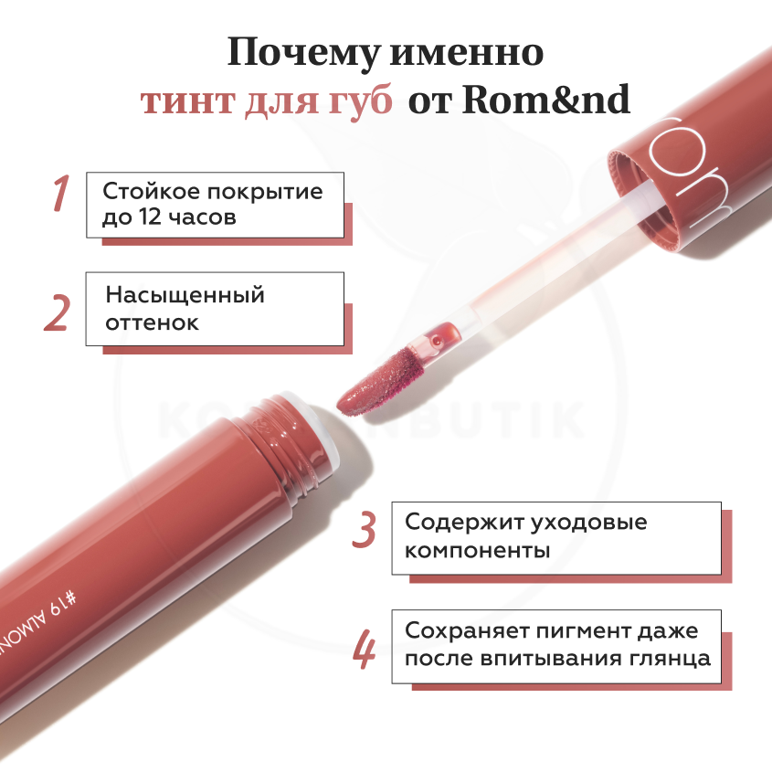 СохранитьТинт глянцевый для губ | ROM&ND Juicy Lasting Tint 19. Almond Rose интересное: