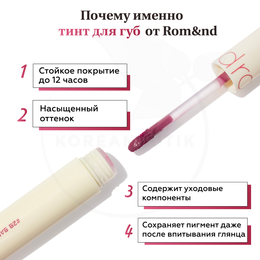 СохранитьТинт глянцевый для губ | ROM&ND Juicy Lasting Tint 28 BARE FIG интересное:
