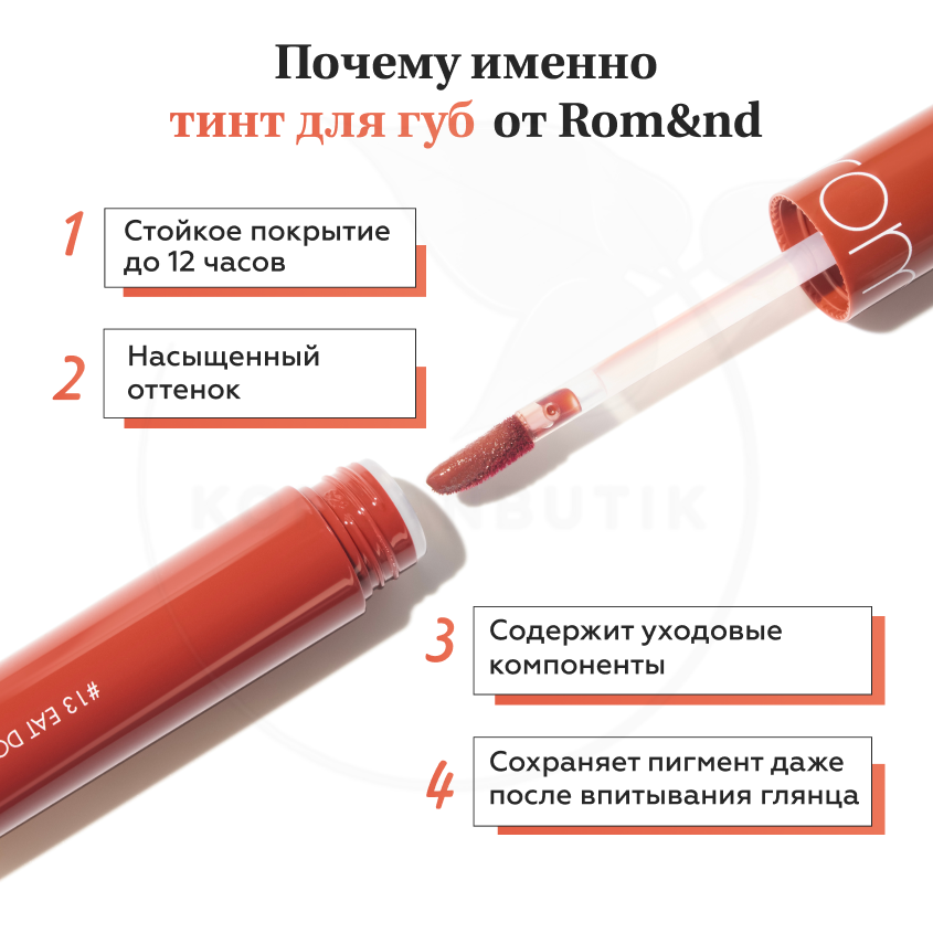 СохранитьТинт глянцевый для губ | ROM&ND Juicy Lasting Tint 13 Eat Dotori интересное: