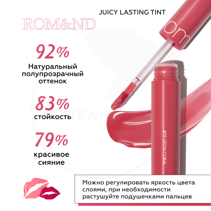 СохранитьТинт глянцевый для губ | ROM&ND JUICY LASTING TINT 09.LITCHI CORAL интересное: