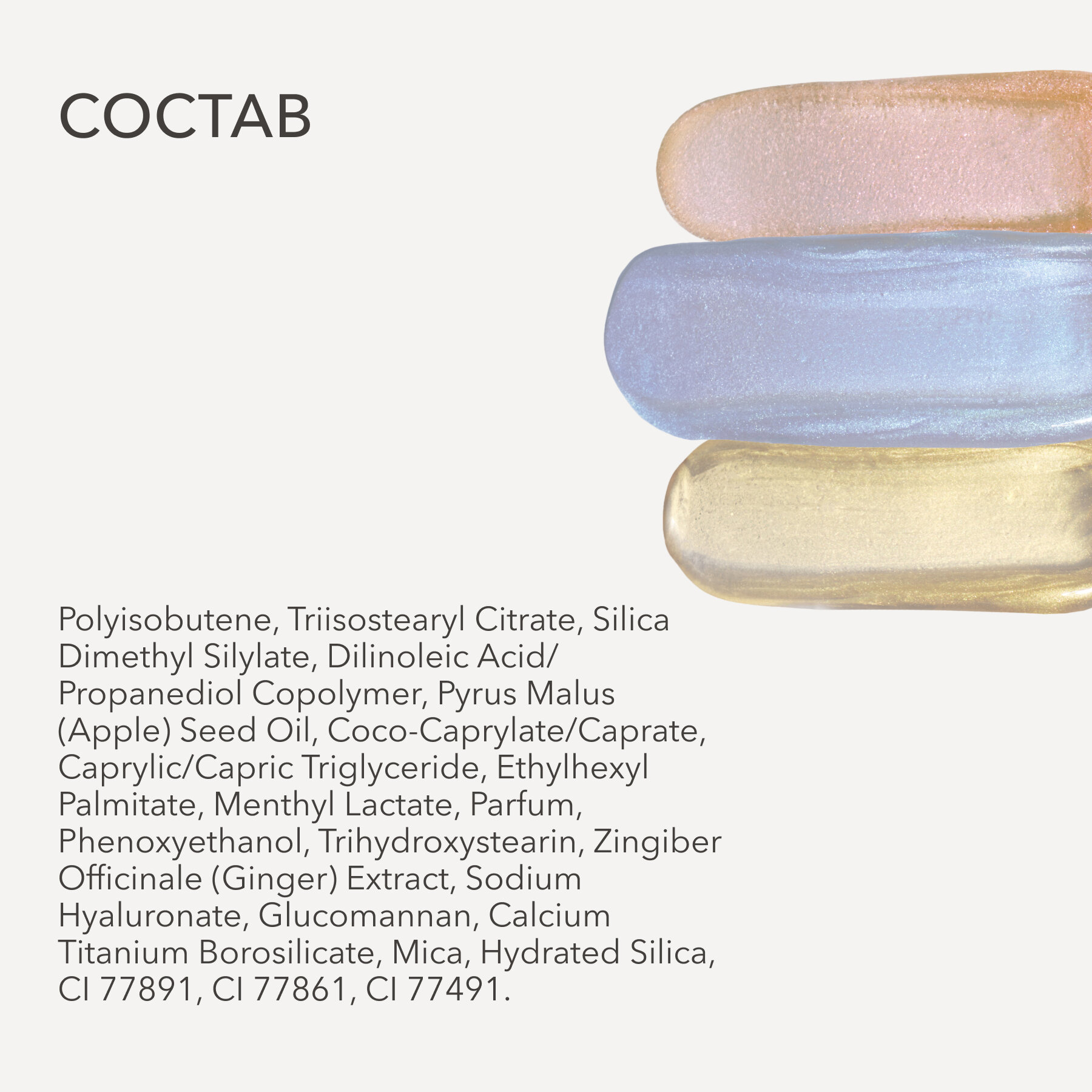 | Состав | Polyisobutene, Triisostearyl Citrate, Silica Dimethyl Silylate, Dilinoleic Acid/Propanediol Copolymer, Pyrus Malus (Apple) Seed Oil, Coco-Caprylate/Caprate, Caprylic/Capric Triglyceride, Ethylhexyl Palmitate, Menthyl Lactate, Parfum, Phenoxyethanol, Trihydroxystearin, Zingiber Officinale (Ginger) Extract, Sodium Hyaluronate, Glucomannan, Calcium Titanium Borosilicate, Mica, Hydrated Silica, CI 77891, CI 77861, CI 77491. |