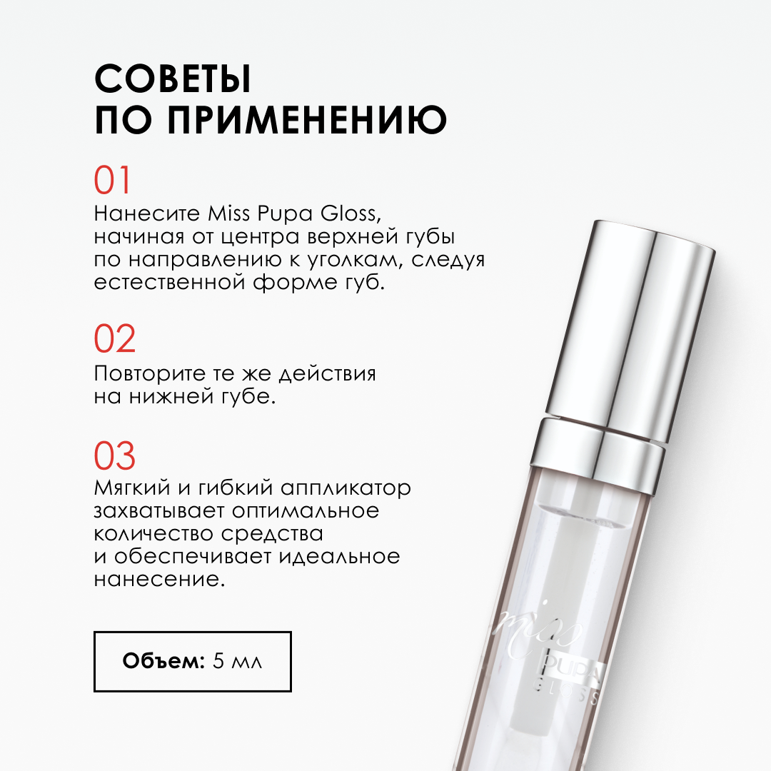 Купить PUPA Miss Pupa Gloss Блеск для губ №100 Кристальный стеклянный 5 мл (020033A100)