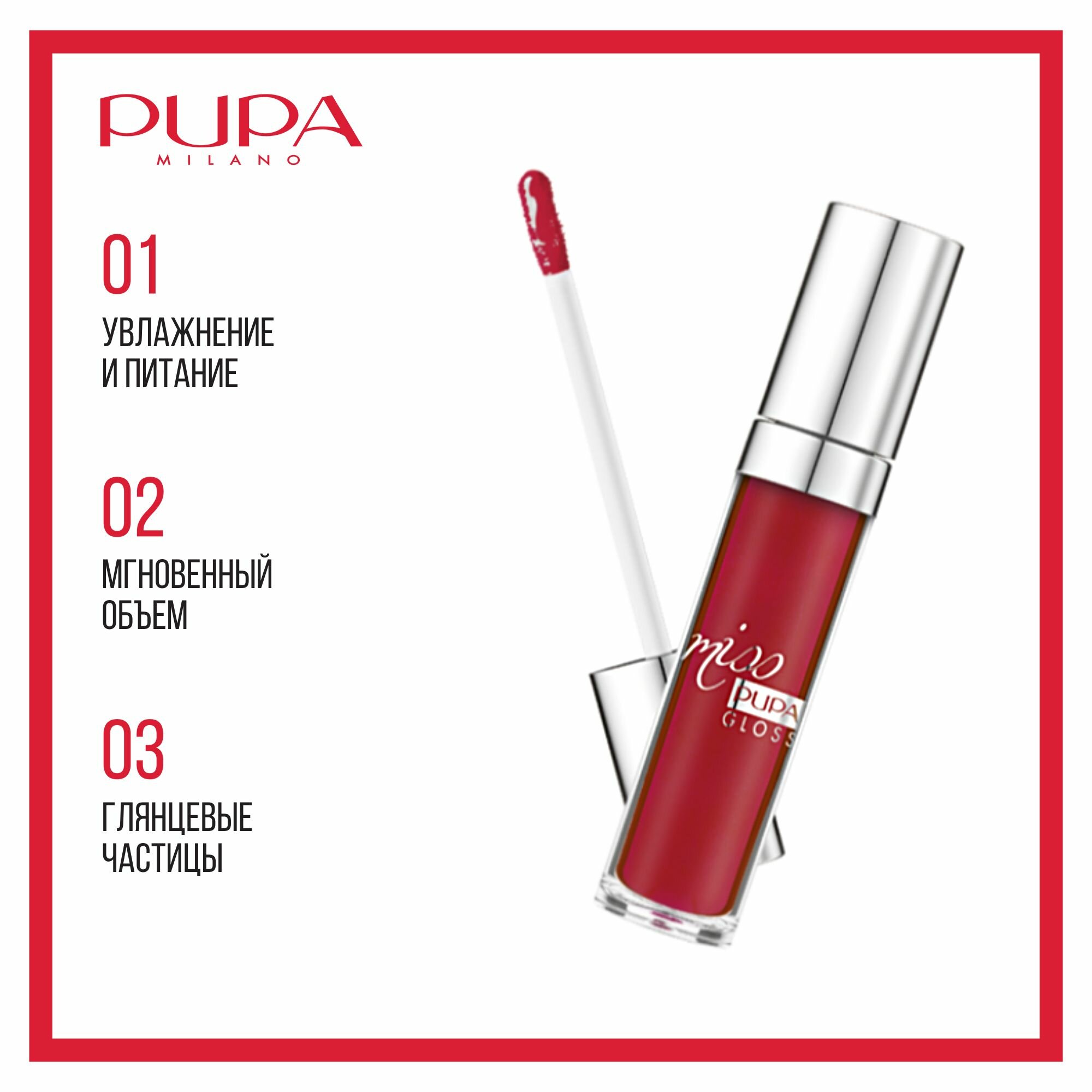 Pupa Блеск для губ Miss Pupa Gloss, тон 305 значительный красный