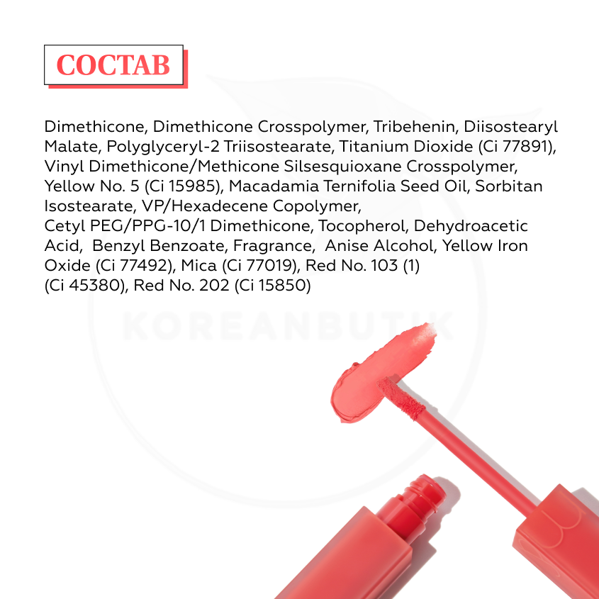 | Способ применения | Нанесите необходимое количество тинта на поверхность губ и равномерно распределите. Для яркости можно повторить нанесение 2-3 раза. |