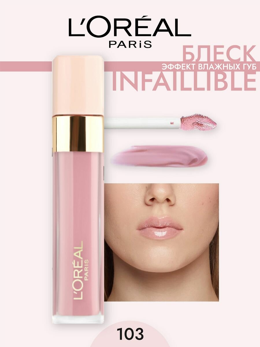L'Oreal Paris Infaillible Мега Блеск Безупречный для губ, тон 103 Яркий протест, кремовый, розовый