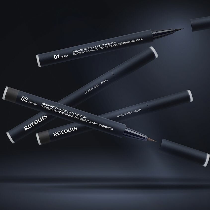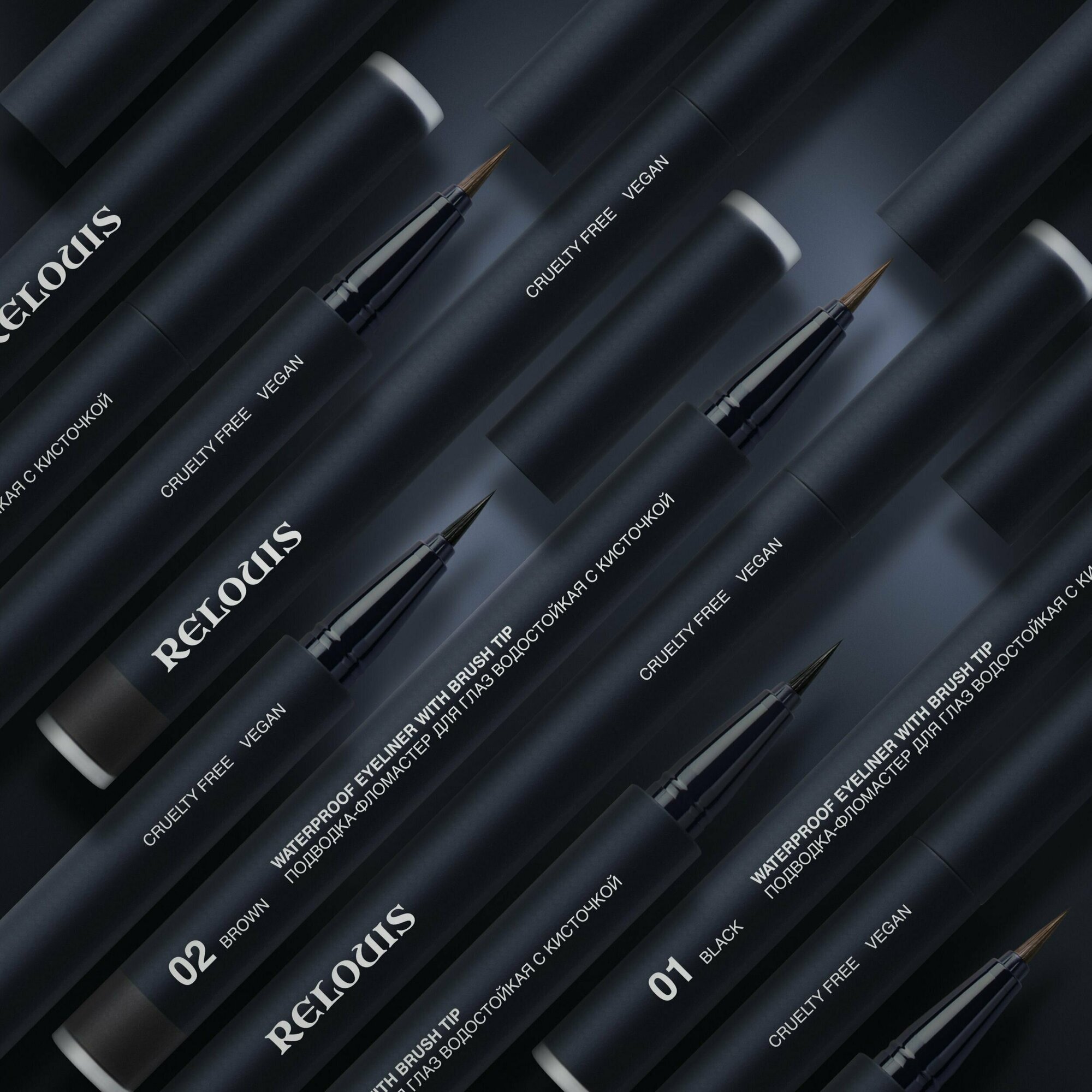 RELOUIS Подводка-фломастер для глаз водостойкая с кисточкой, Тон 02 Brown