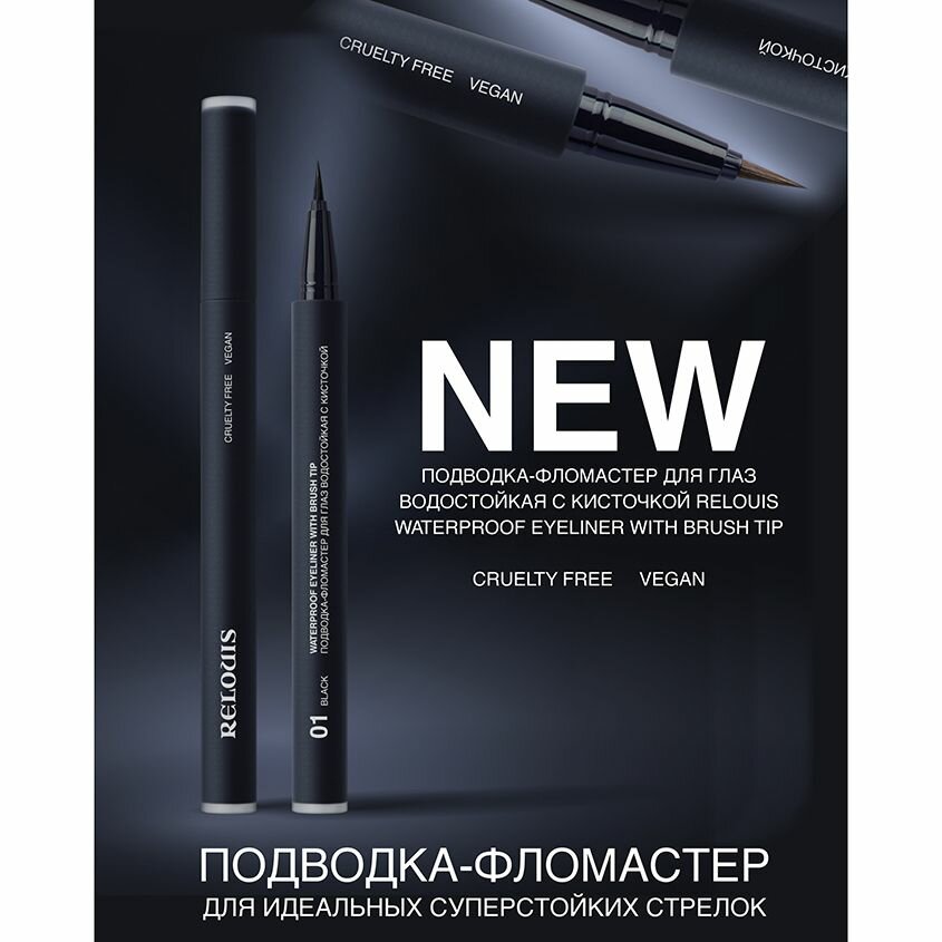 Купить RELOUIS Подводка-фломастер для глаз водостойкая с кисточкой чёрная