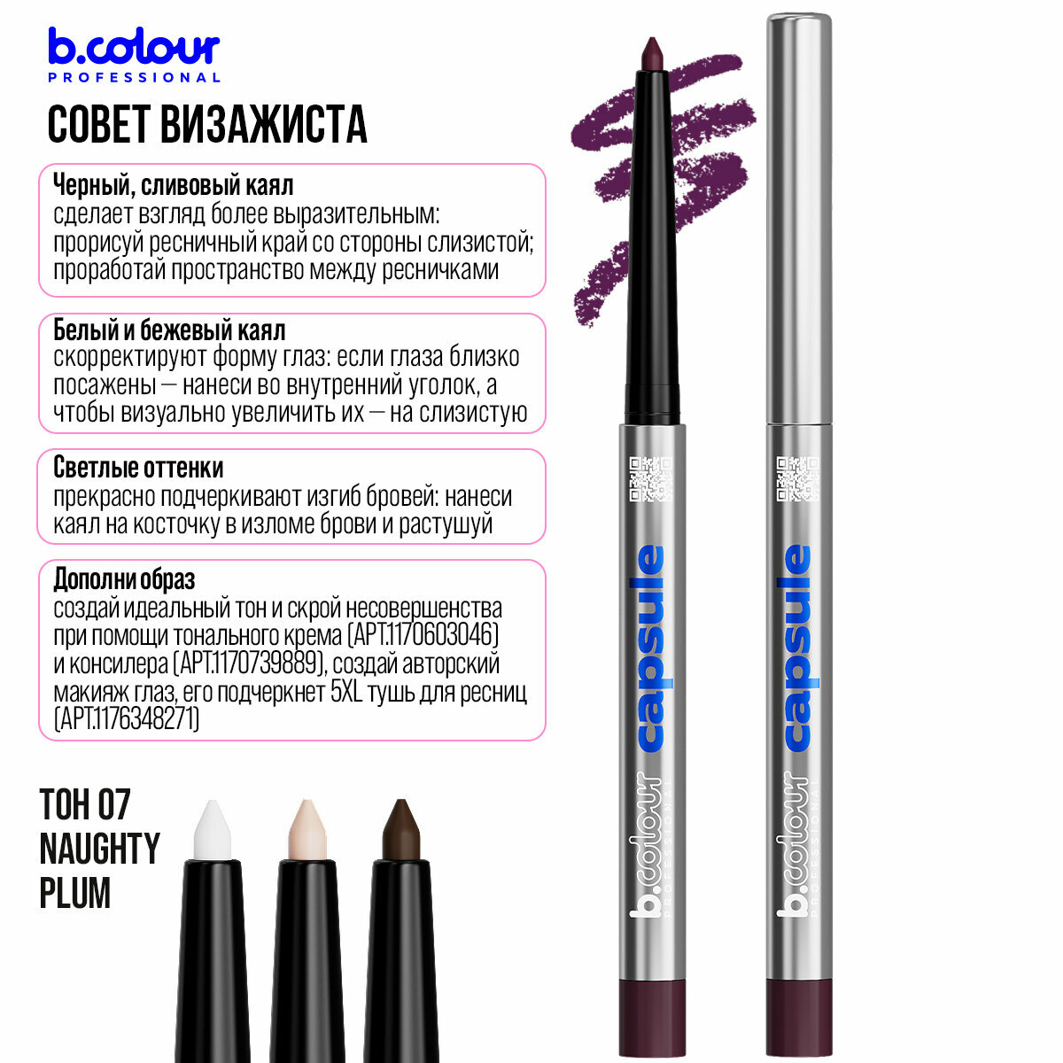 Купить Карандаш для глаз B.COLOUR PROFESSIONAL CAPSULE фиолетовый каял для слизистой гелевый автоматический водостойкий 07 Naughty plum