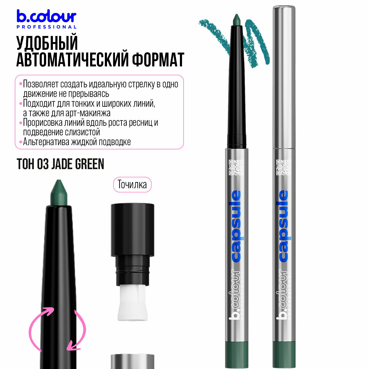 B.COLOUR PROFESSIONAL Карандаш для глаз каял гелевый водостойкий CAPSULE, 03 JADE GREEN