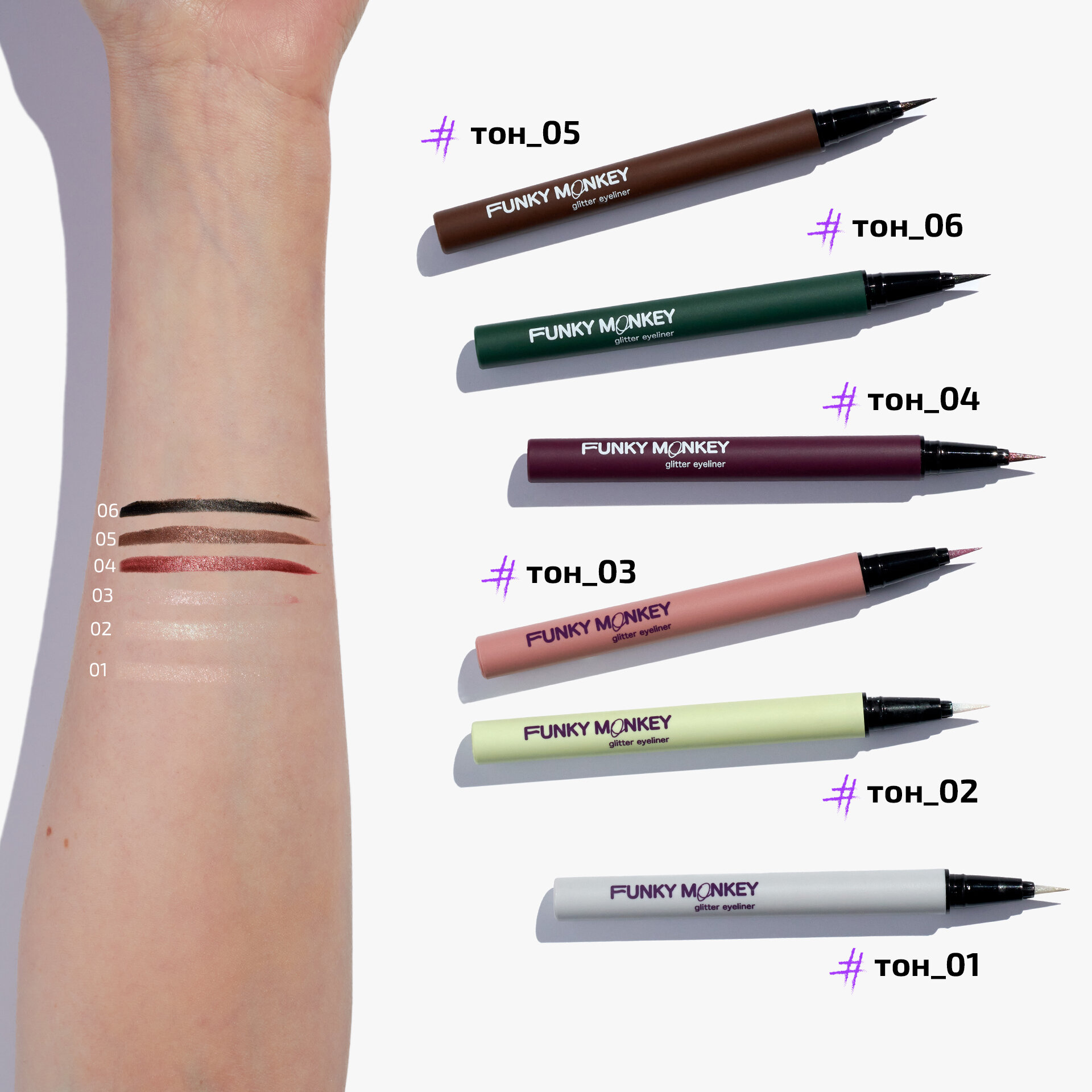 FUNKY MONKEY Маркер для глаз сияющий Glitter eyeliner, 0,6 г, 06