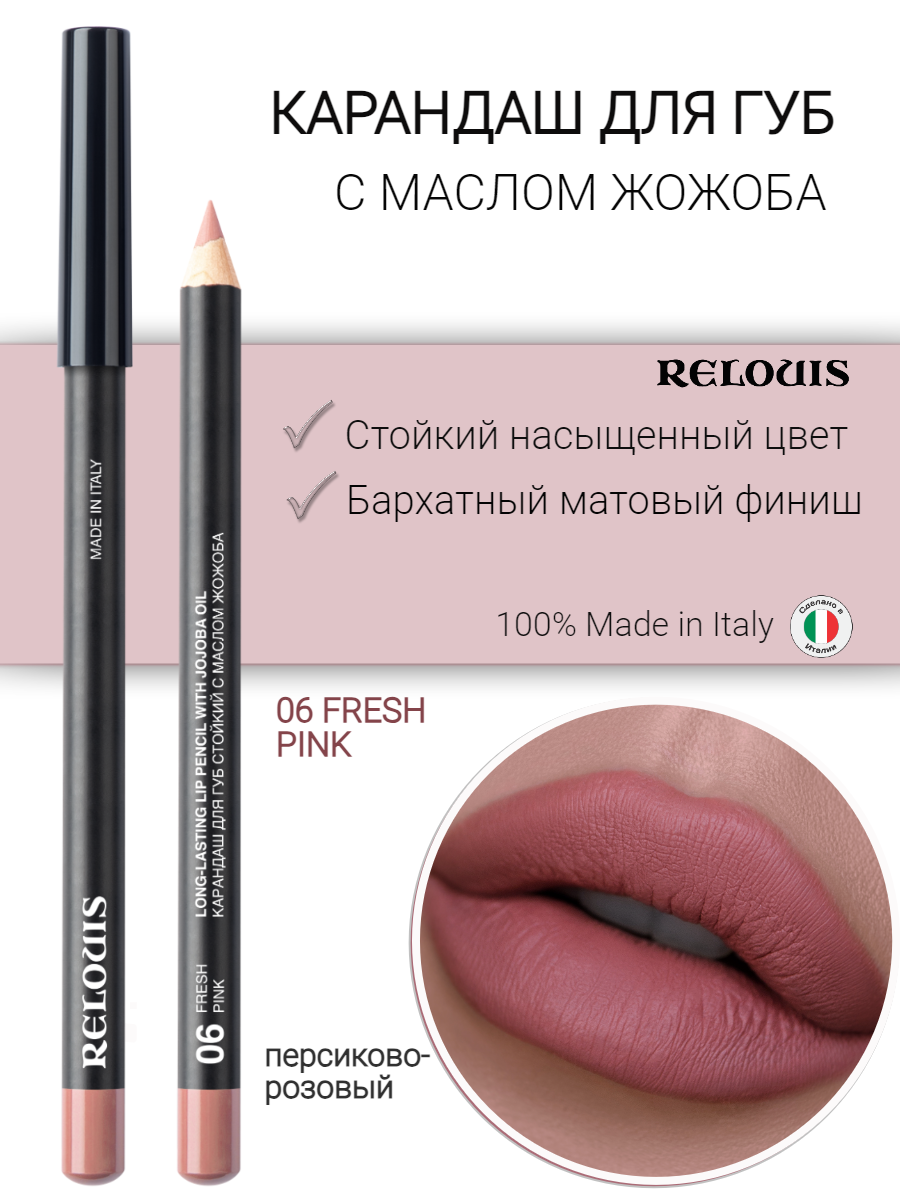 RELOUIS Карандаш для губ стойкий с маслом жожоба Италия тон 06 fresh pink