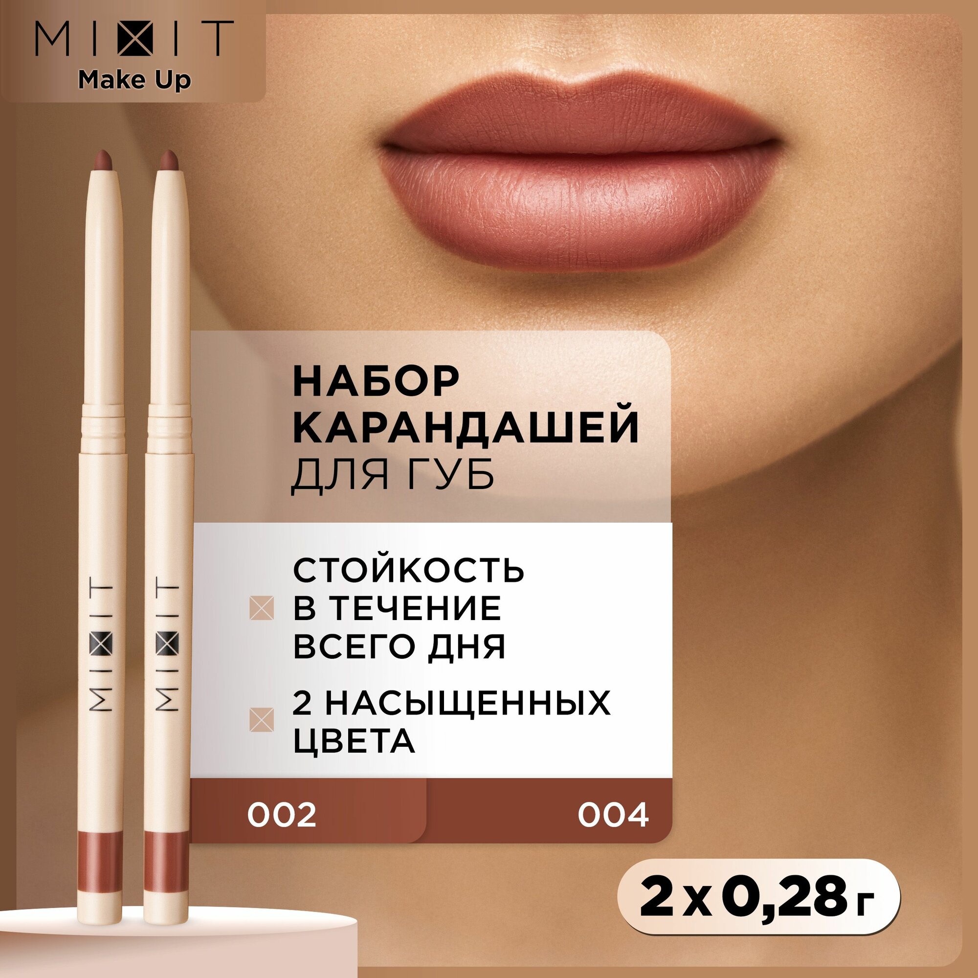 Купить Набор карандашей для губ MIXIT: матовые, стойкие, нюдовых оттенков MAKE UP, 2 шт.