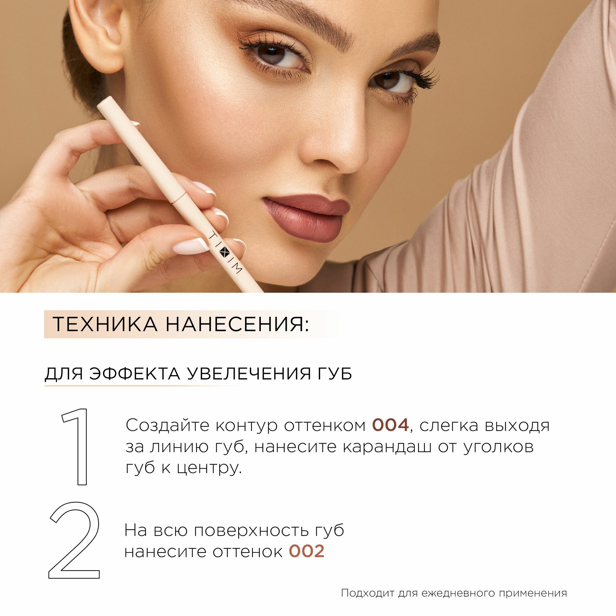 | Способ применения | для эффекта увеличения объема создайте контур, слегка выходя за линию губ. Или же нанесите выдвижной корректор в качестве самостоятельного продукта. |