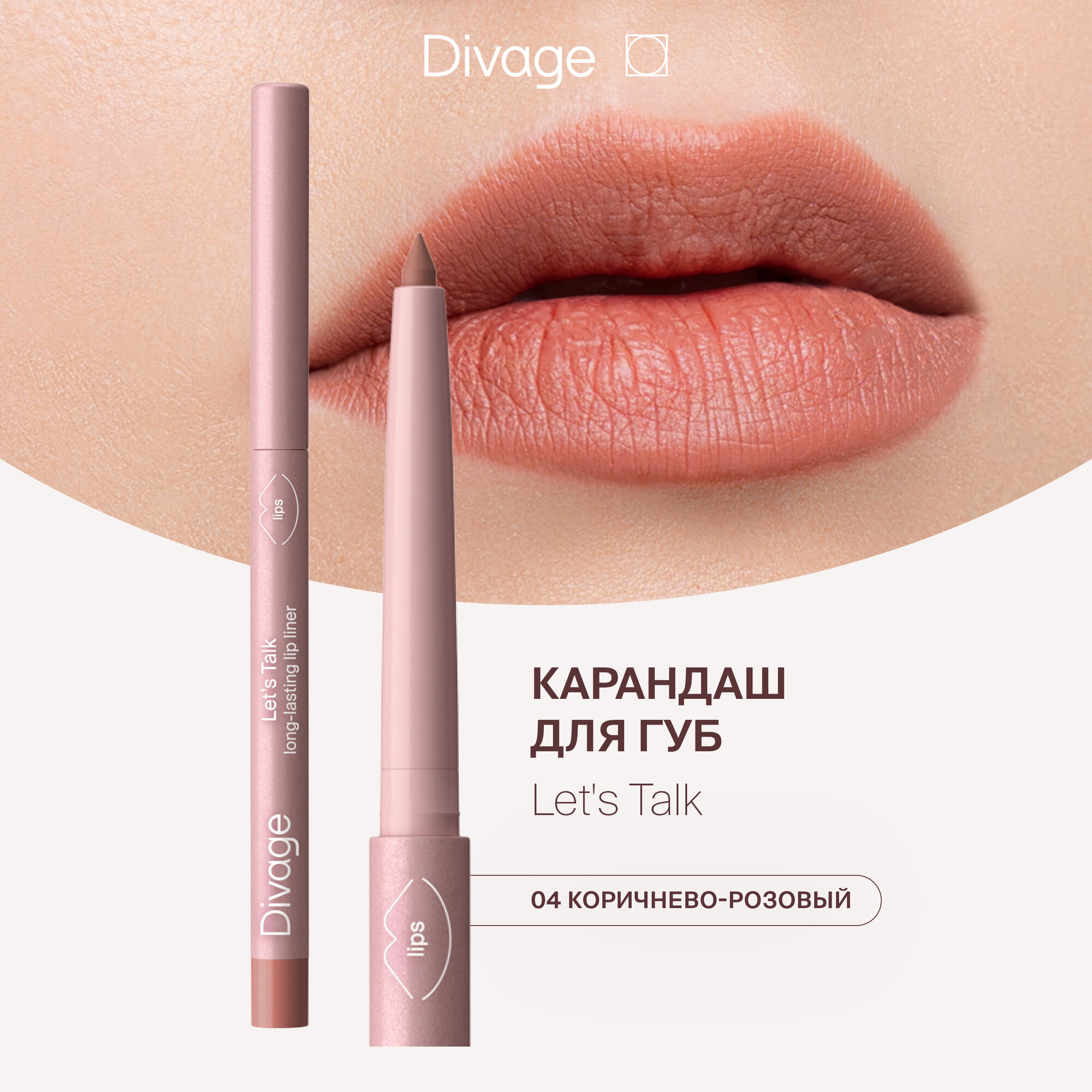 Автоматический карандаш для губ Divage Let's Talk long-lasting lip liner, тон: 04 коричнево-розовый, 0.26г