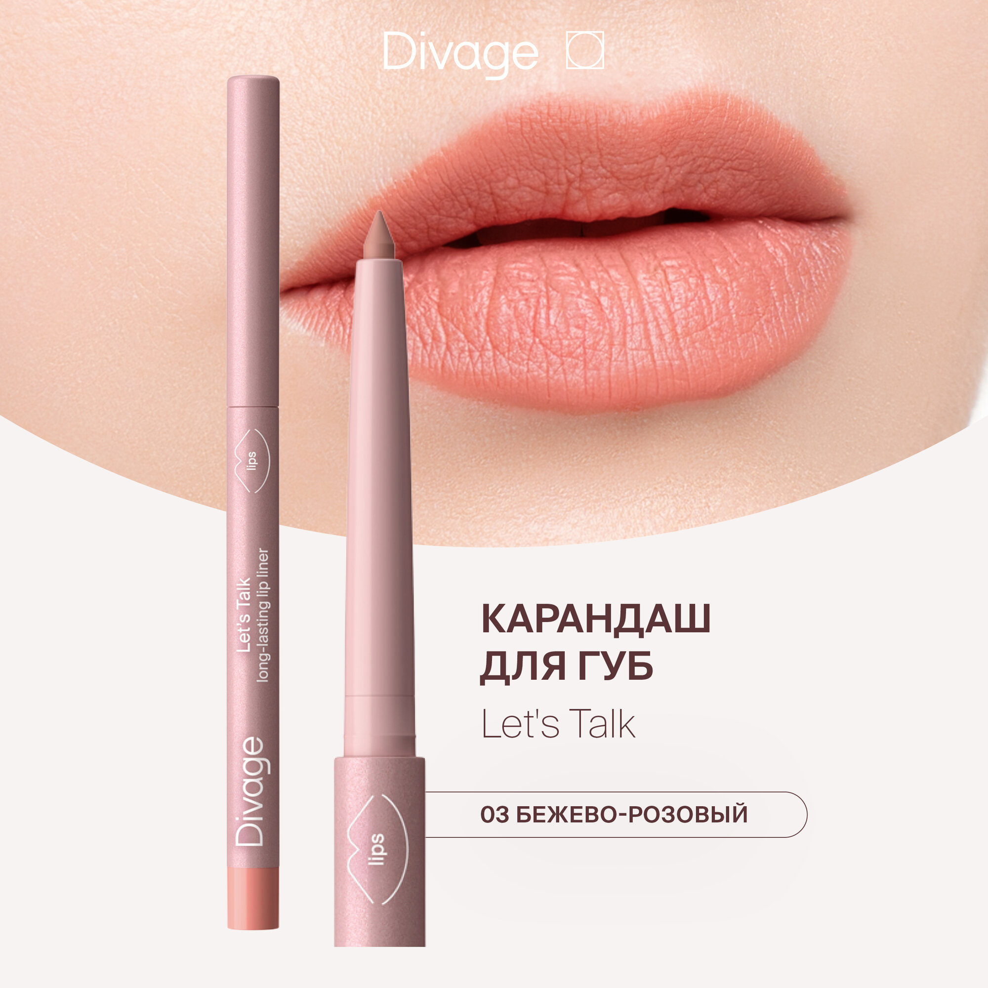 Divage Автоматический карандаш для губ Let s Talk long-lasting lip liner Тон 03 бежево-розовый
