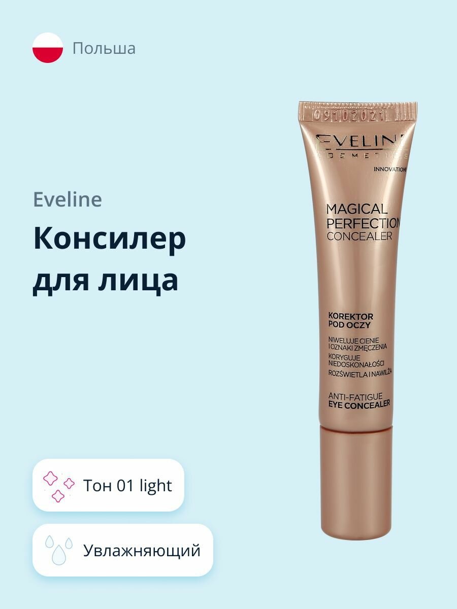 Консилер для лица `EVELINE` Magical Perfection (от темных кругов и признаков усталости) тон 01 light, 15мл