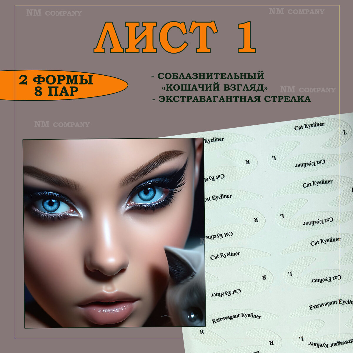 Набор трафаретов , для стрелок и теней, гипоаллергенные, белый 32 штуки
