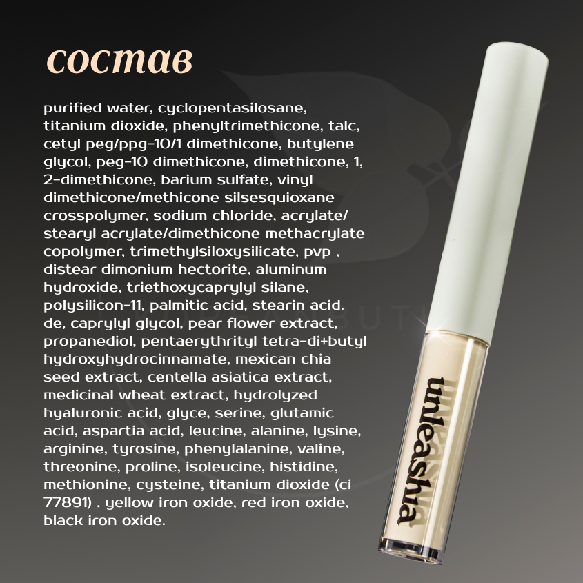 | Состав | Water (Aqua), Cyclopentasiloxane, Phenyl Trimethicone, Titanium Dioxide, Cetyl PEG/PPG-10/1 Dimethicone, Talc, Butylene Glycol, PEG-10 Dimethicone, 1,2-Hexanediol, Barium Sulfate, Vinyl Dimethicone/Methicone Silsesquioxane Crosspolymer, Sodium Chloride, Acrylates/Stearyl Acrylate/Dimethicone Methacrylate Copolymer, Trimethylsiloxysilicate, PVP, Dimethicone, Triethoxycaprylylsilane, Disteardimonium Hectorite, Aluminum Hydroxide, Polysilicone-11, Palmitic Acid, Stearic Acid, Caprylyl Glycol, Pyrus Communis (Pear) Flower Extract, Propanediol, Pentaerythrityl Tetra-di-t-butyl Hydroxyhydrocinnamate, Salvia Hispanica Seed Extract, Centella Asiatica Extract, Houttuynia Cordata Extract, Hydrolyzed Hyaluronic Acid, Glycine, Serine, Glutamic Acid, Aspartic Acid, Leucine, Alanine, Lysine, Arginine, Tyrosine, Phenylalanine, Valine, Threonine, Proline, Isoleucine, Histidine, Methionine, Cysteine, Titanium Dioxide (CI 77891), Iron Oxides (CI 77492), Iron Oxides (CI 77491), Iron Oxides (CI 77499) |