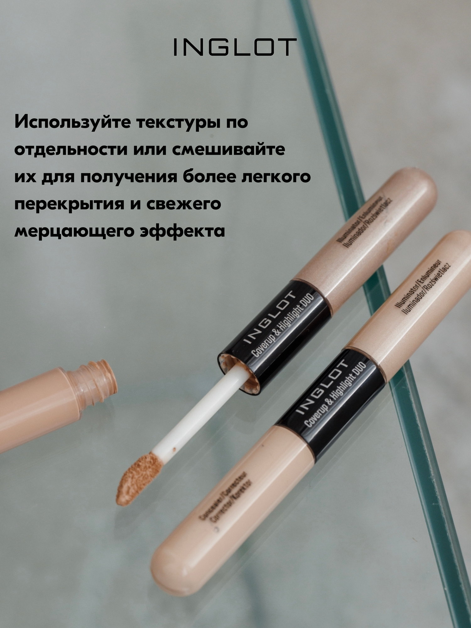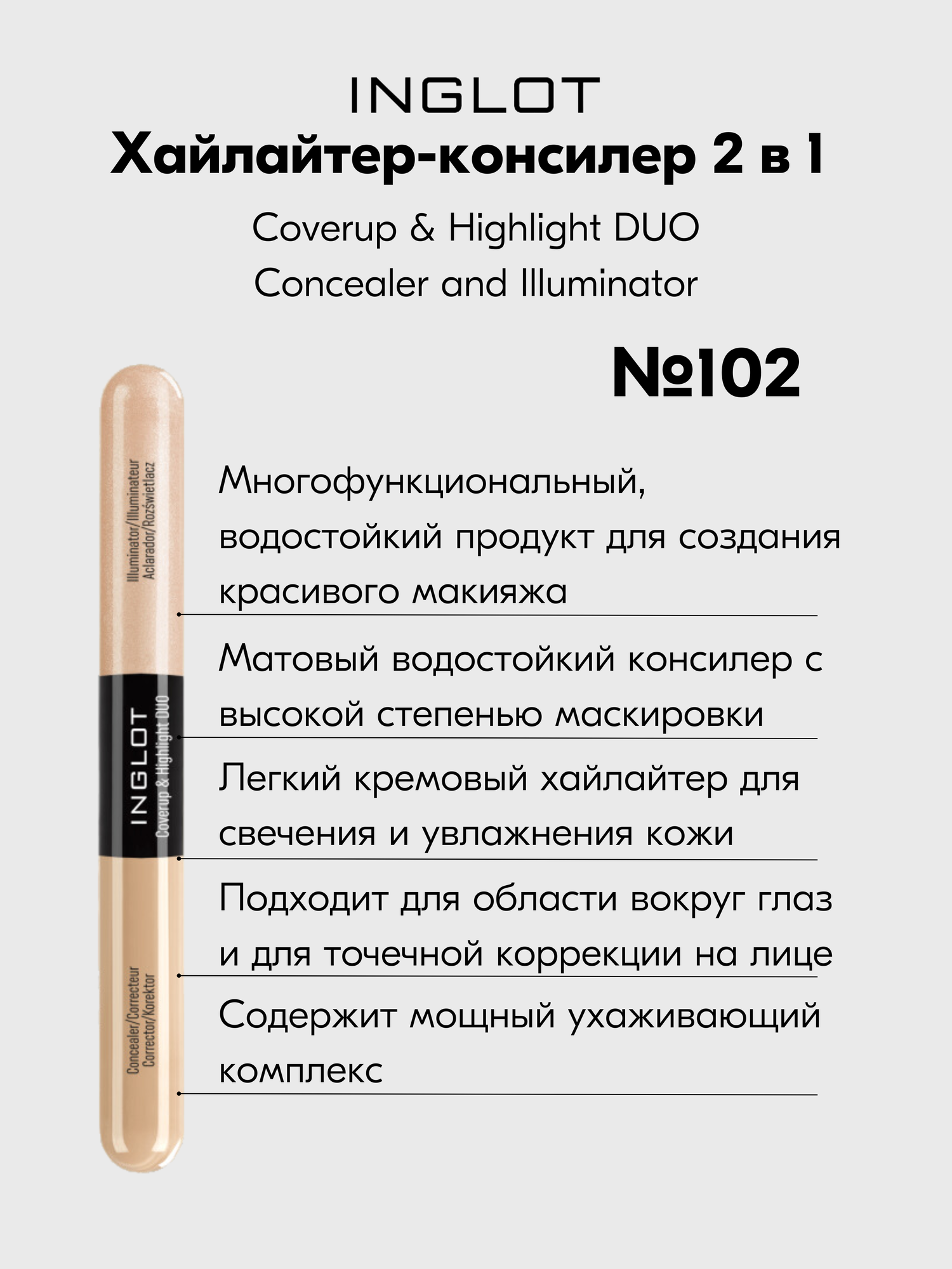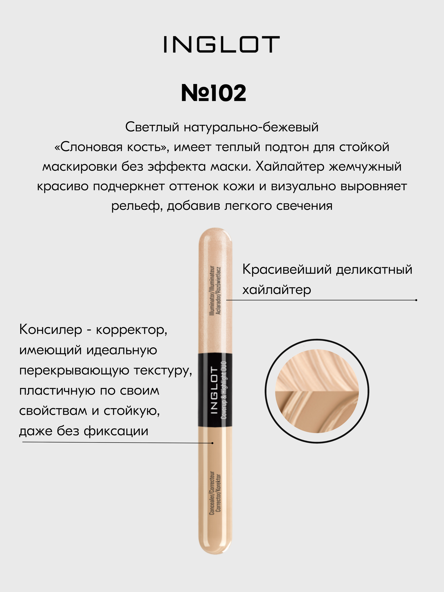 Корректор-хайлайтер консилер INGLOT 2 в1 Coverup & Highlight DUO Concealer and Illuminator №102 интересное: