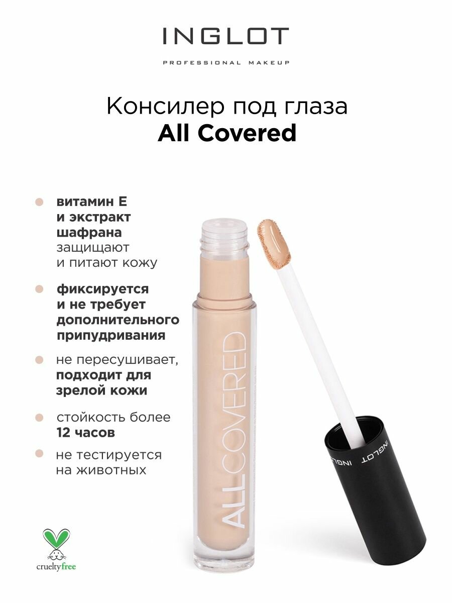 Консилер INGLOT плотный с мягкой ухаживающей формулой под глаза и для лица ALL COVERED CONCEALER N107