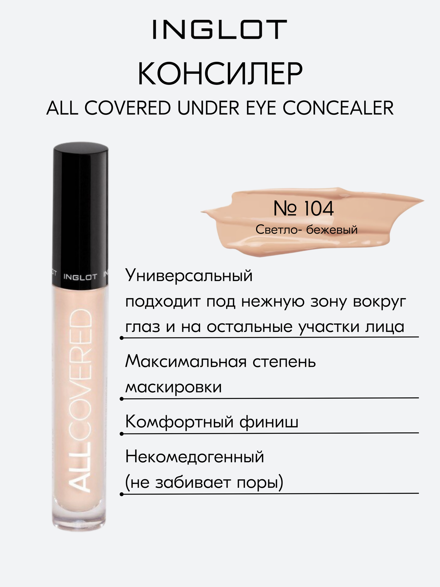Консилер INGLOT плотный с мягкой ухаживающей формулой под глаза и для лица ALL COVERED CONCEALER N104